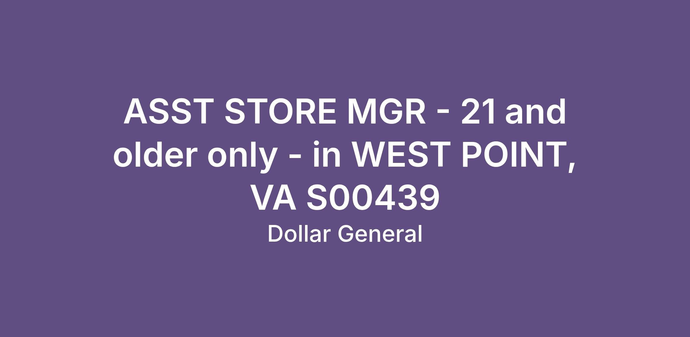 ASST STORE MGR - 21 and older only - in WEST POINT, VA S00439