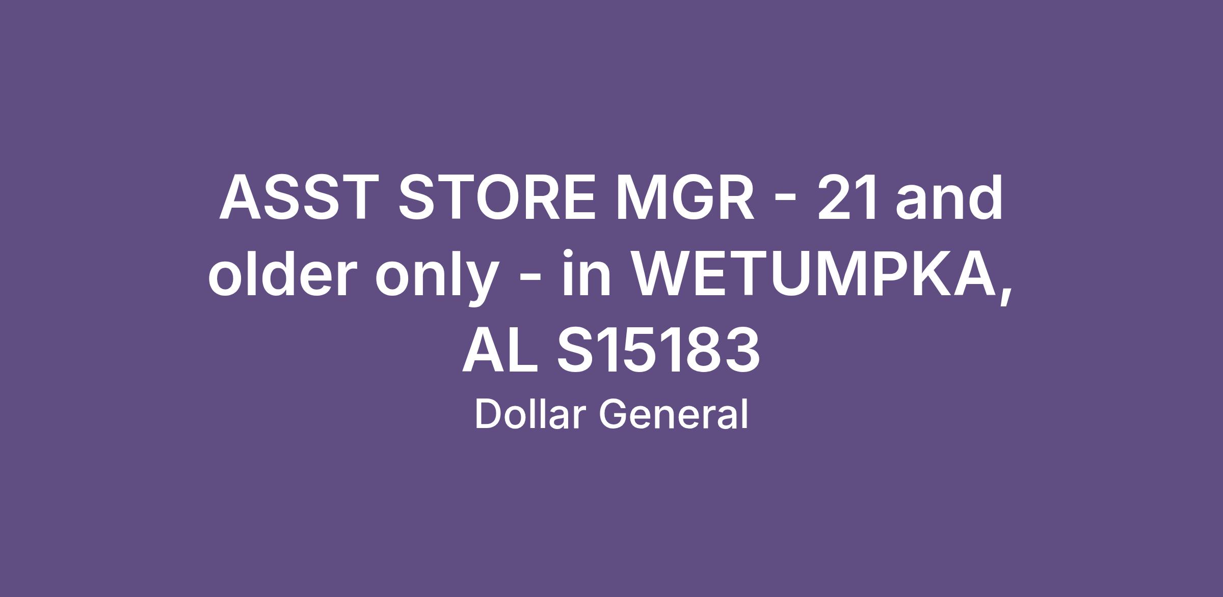 ASST STORE MGR - 21 and older only - in WETUMPKA, AL S15183