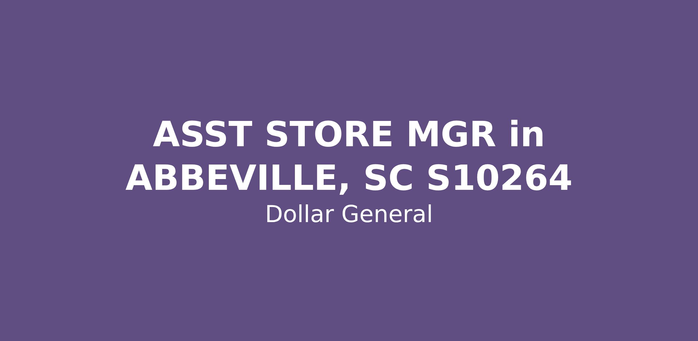 ASST STORE MGR in ABBEVILLE, SC S10264