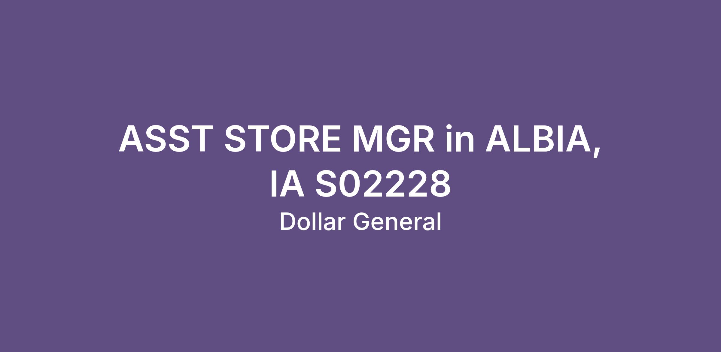 ASST STORE MGR in ALBIA, IA S02228