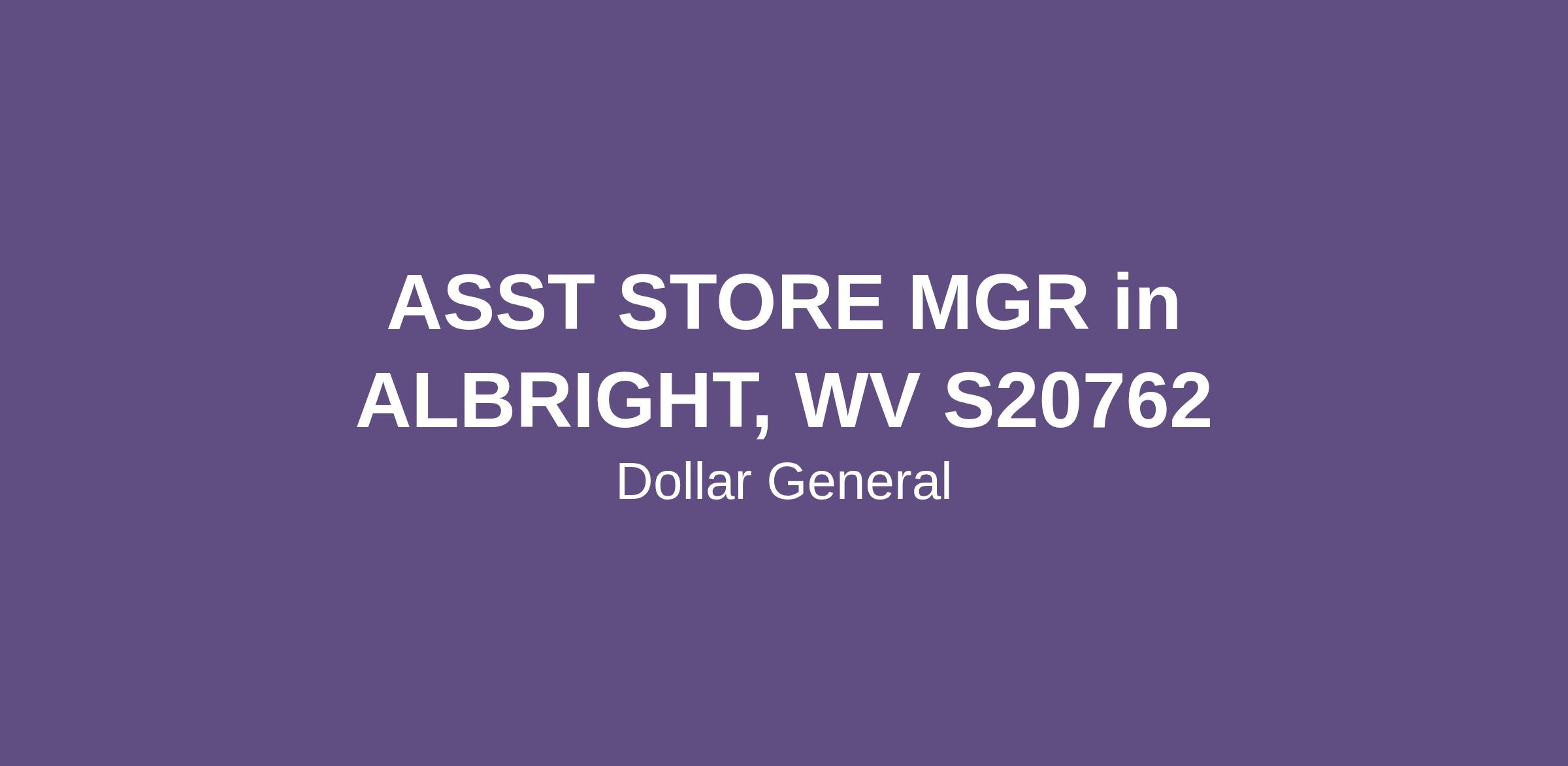 ASST STORE MGR in ALBRIGHT, WV S20762