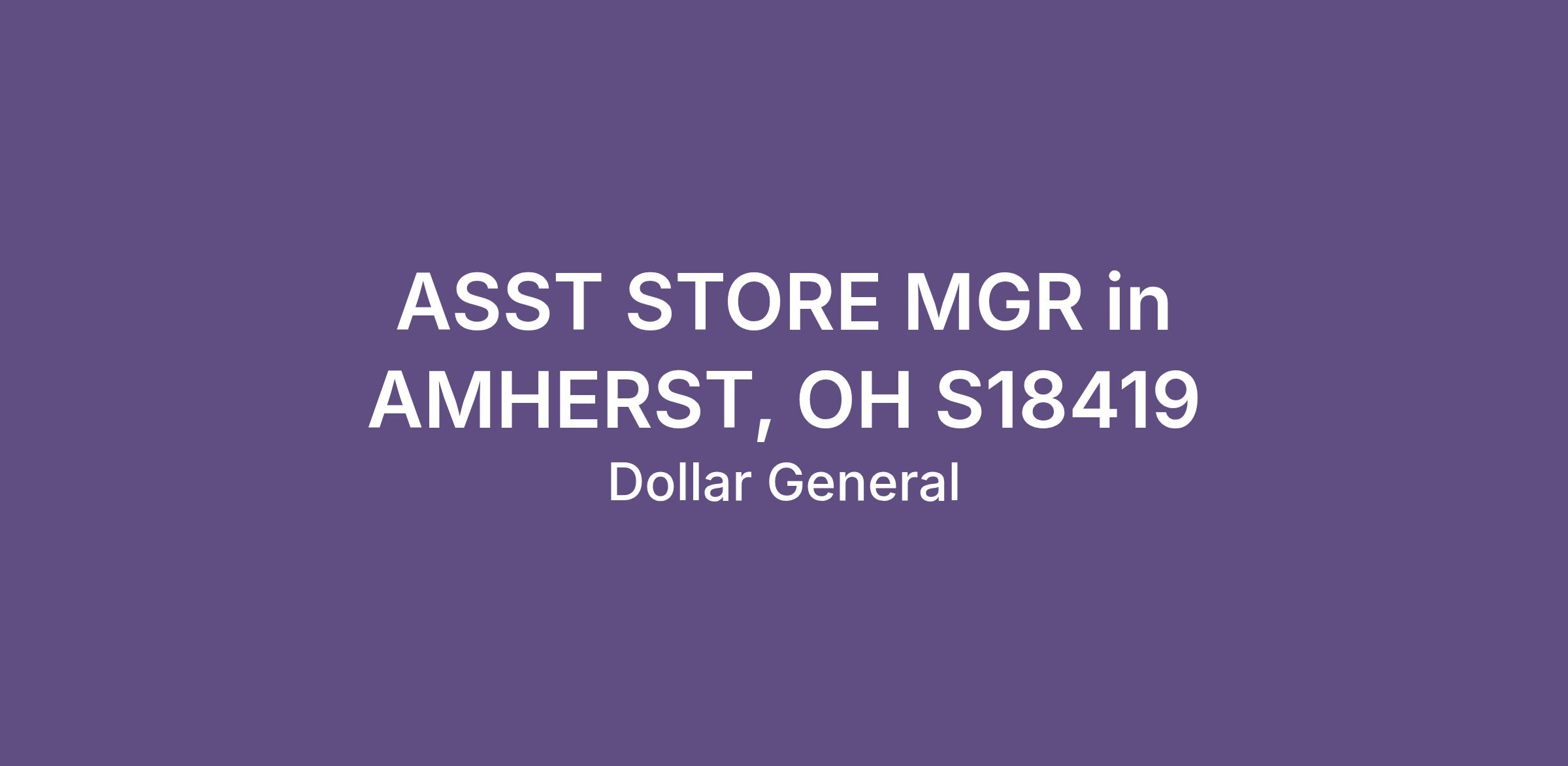 ASST STORE MGR in AMHERST, OH S18419