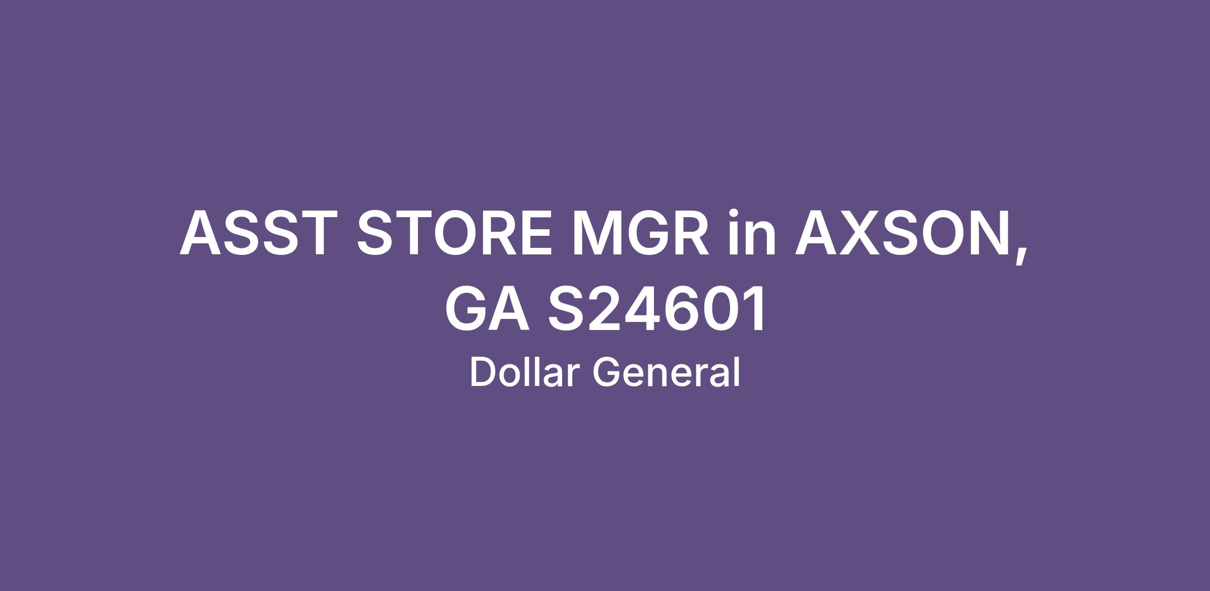 ASST STORE MGR in AXSON, GA S24601