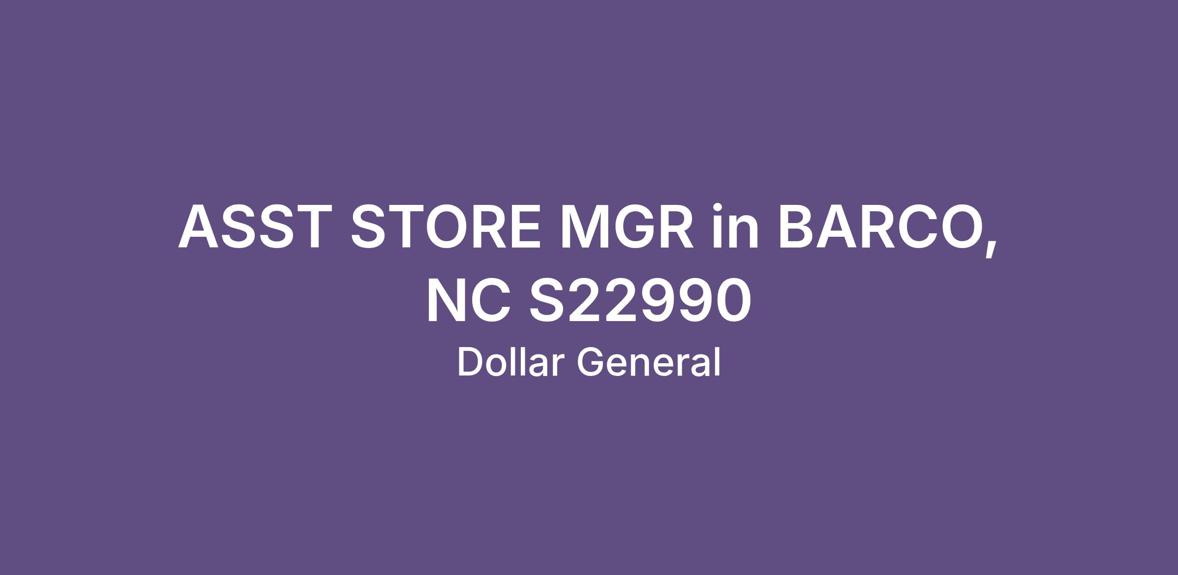 ASST STORE MGR in BARCO, NC S22990