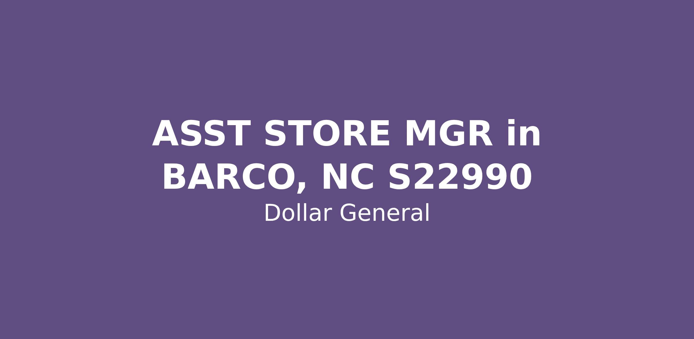 ASST STORE MGR in BARCO, NC S22990