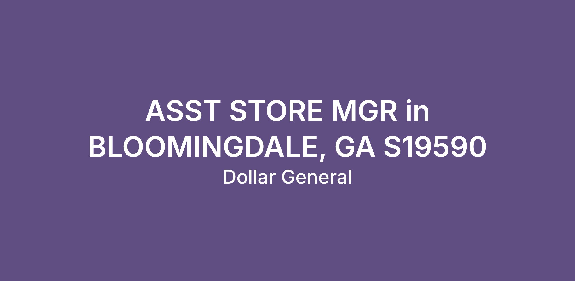 ASST STORE MGR in BLOOMINGDALE, GA S19590