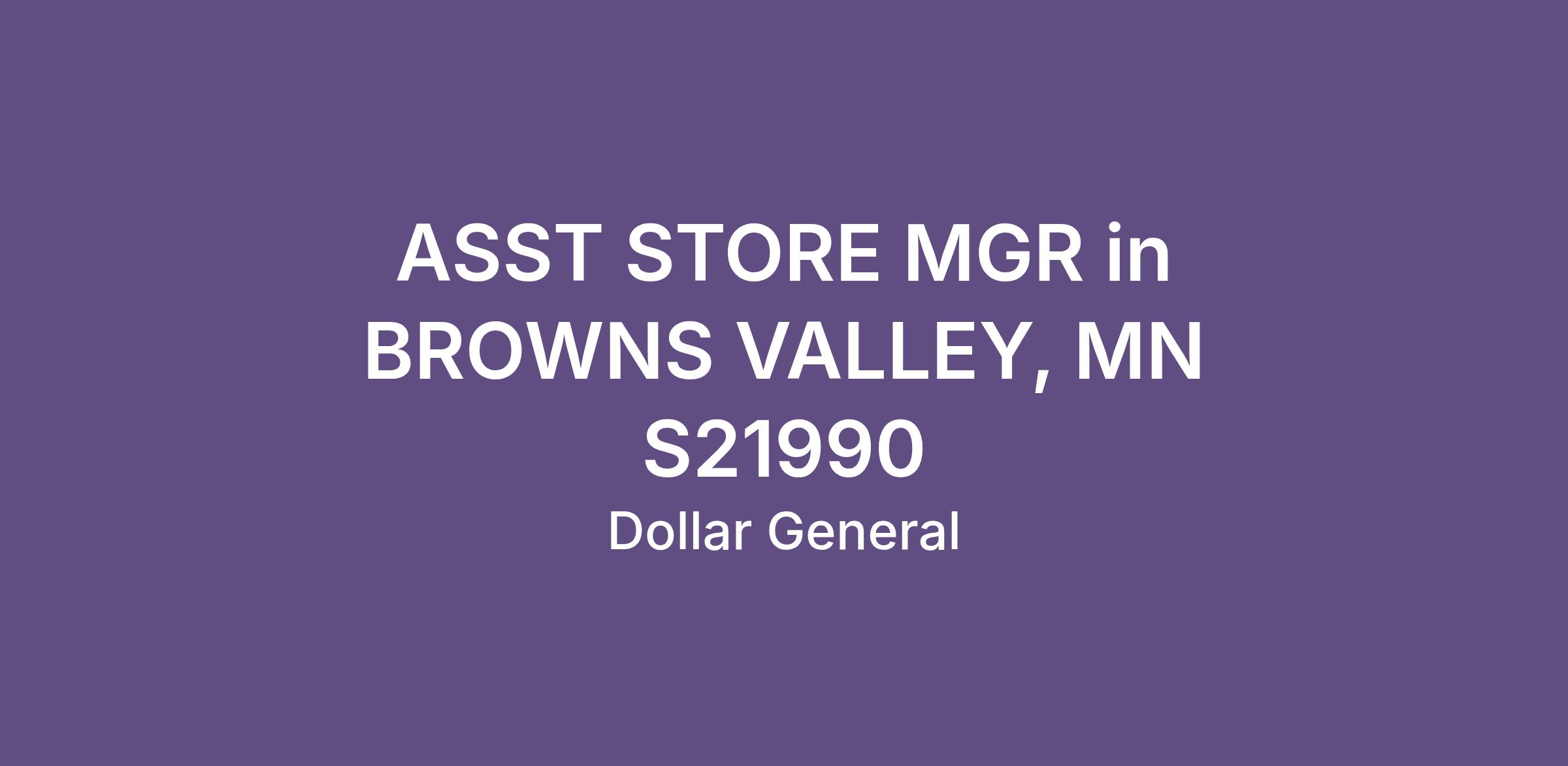 ASST STORE MGR in BROWNS VALLEY, MN S21990