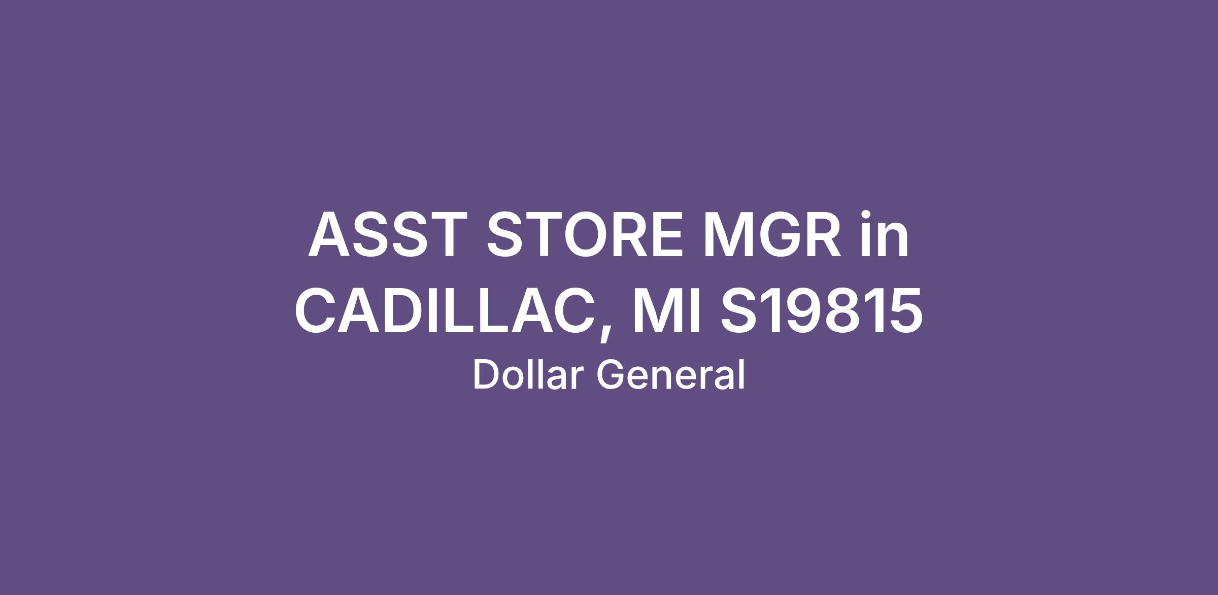ASST STORE MGR in CADILLAC, MI S19815