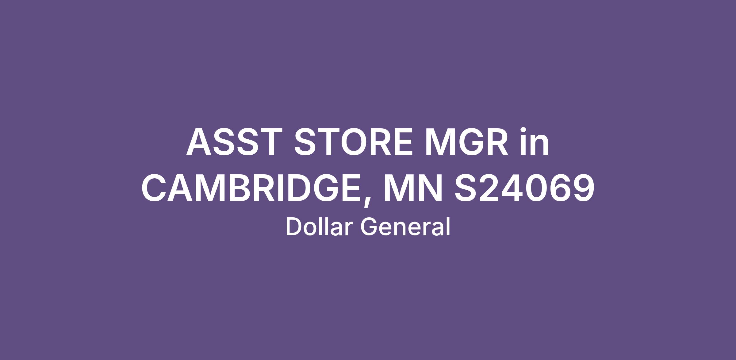 ASST STORE MGR in CAMBRIDGE, MN S24069