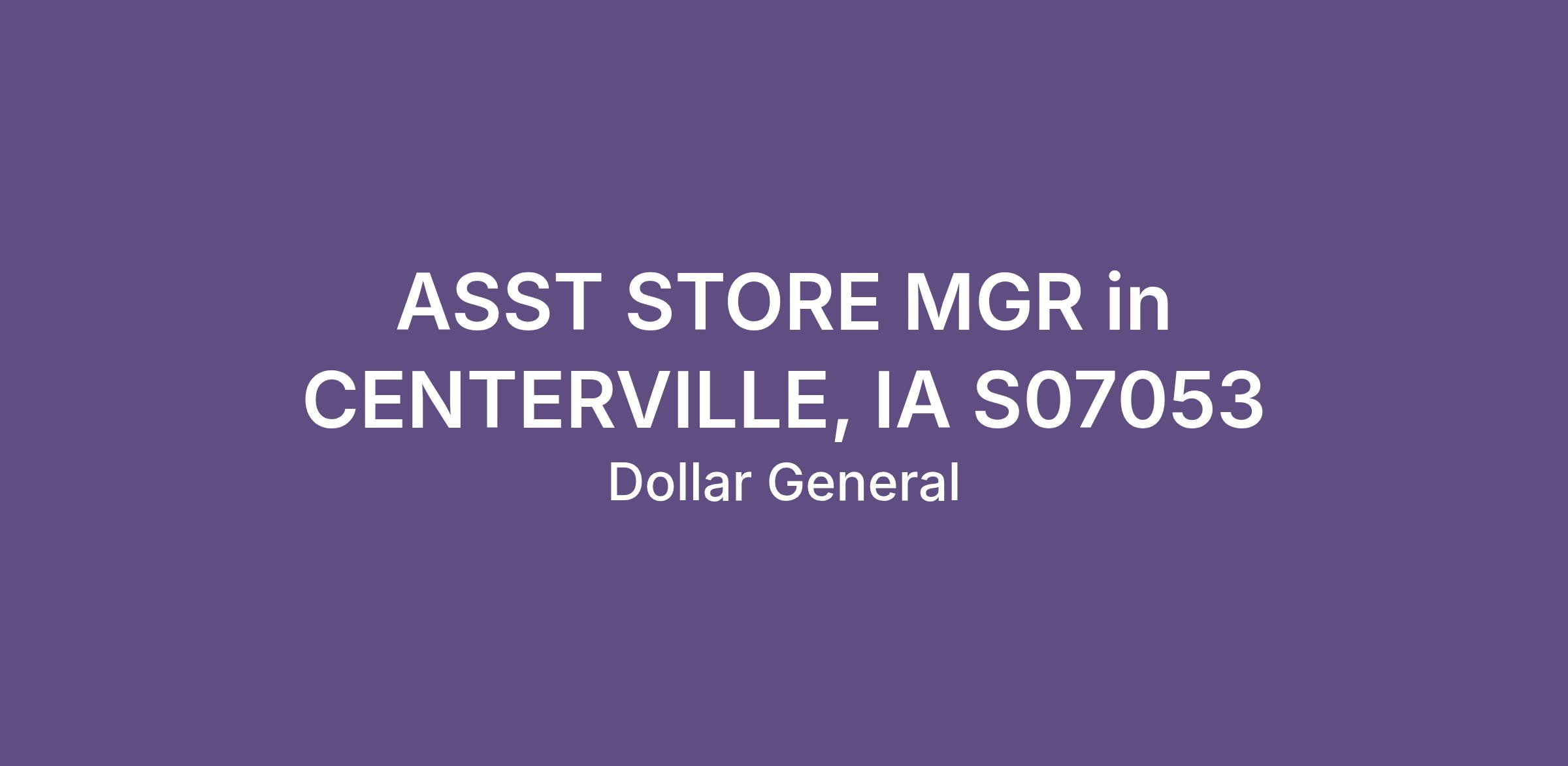 ASST STORE MGR in CENTERVILLE, IA S07053