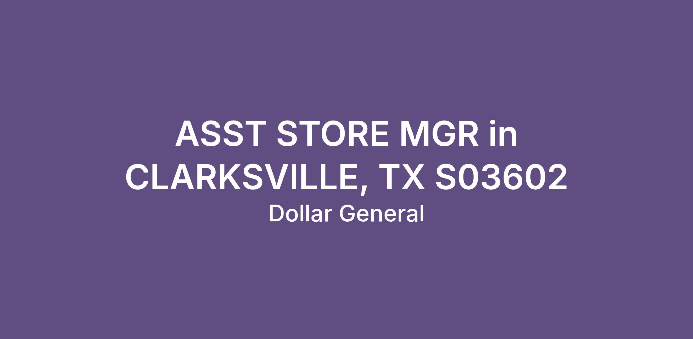 ASST STORE MGR in CLARKSVILLE, TX S03602
