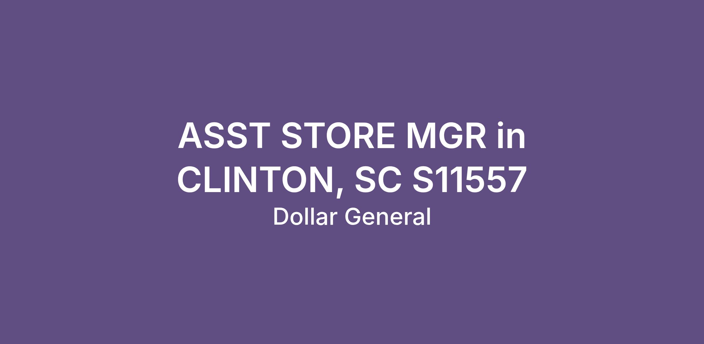 ASST STORE MGR in CLINTON, SC S11557
