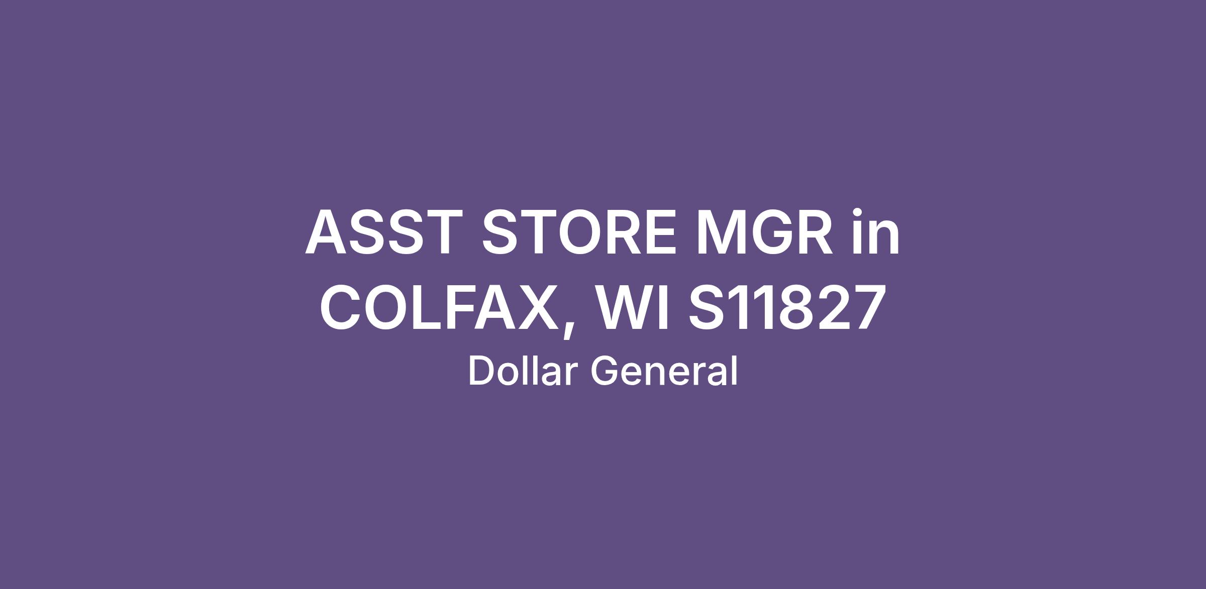 ASST STORE MGR in COLFAX, WI S11827
