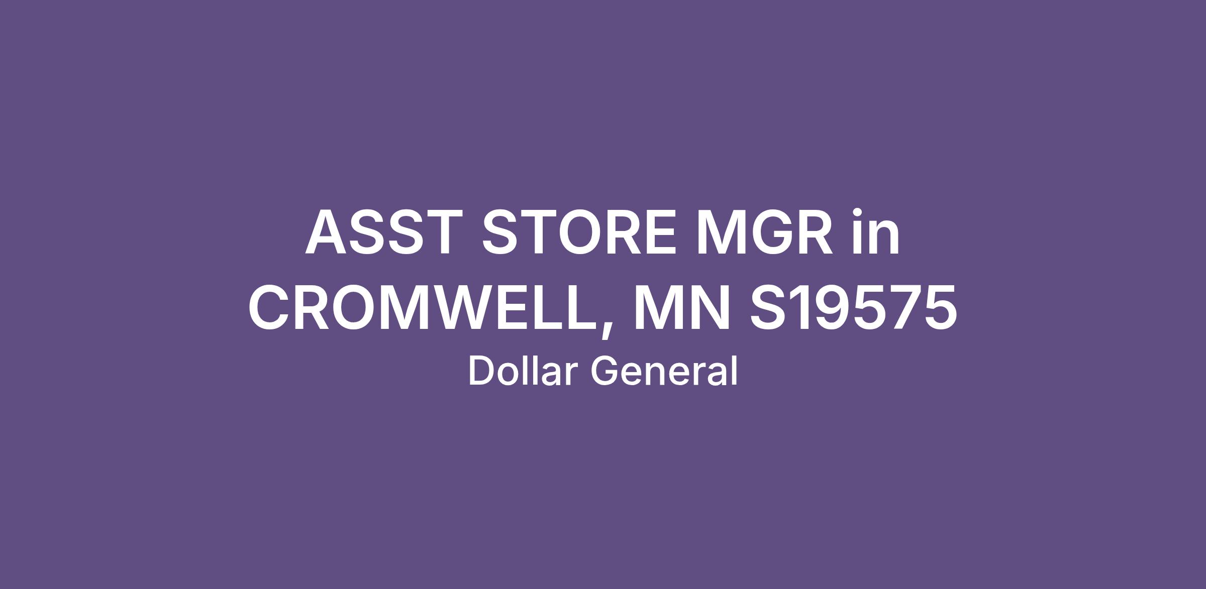 ASST STORE MGR in CROMWELL, MN S19575