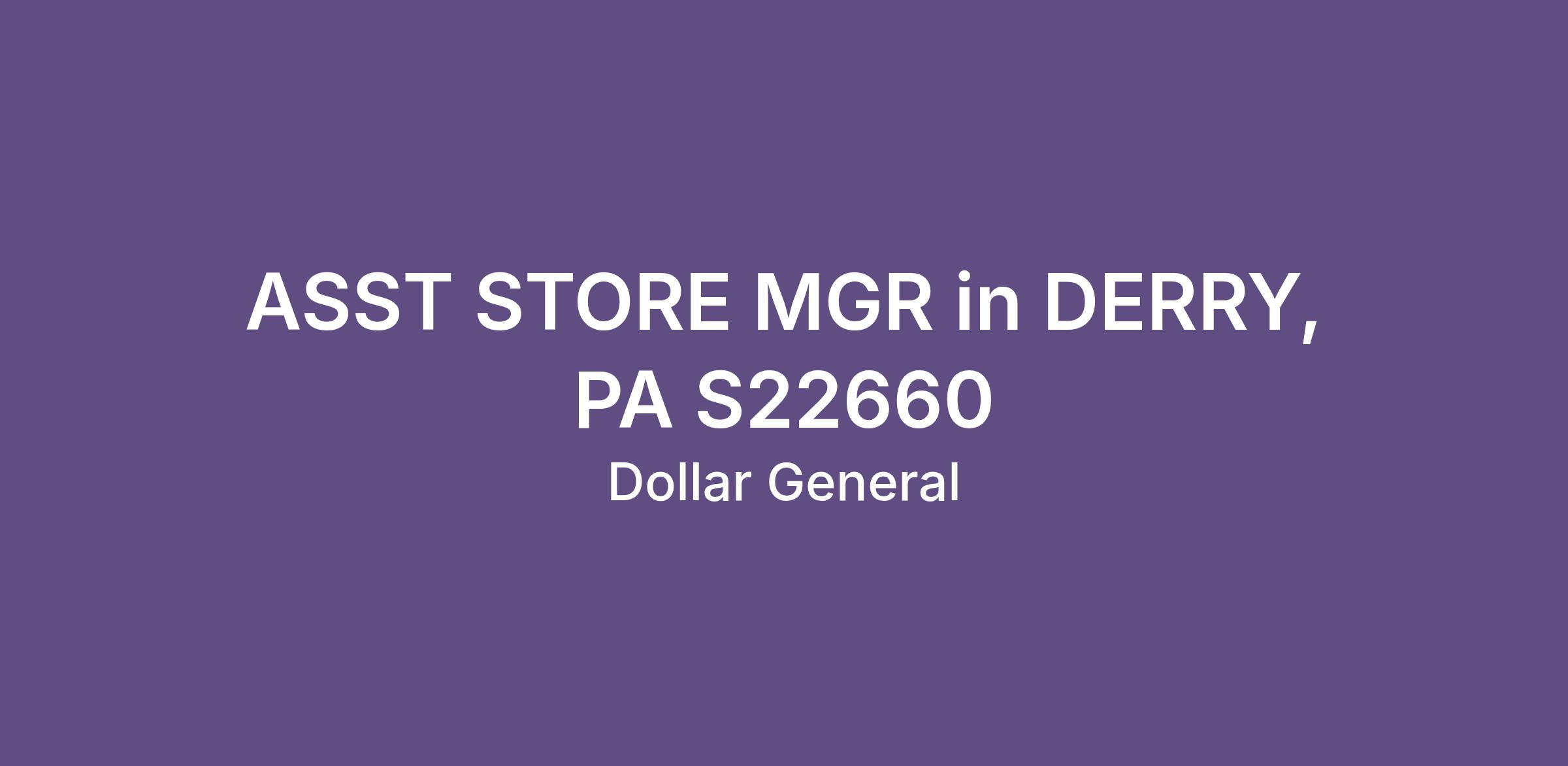 ASST STORE MGR in DERRY, PA S22660
