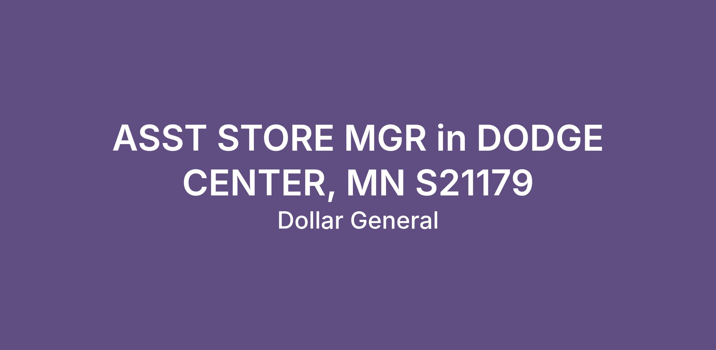 ASST STORE MGR in DODGE CENTER, MN S21179