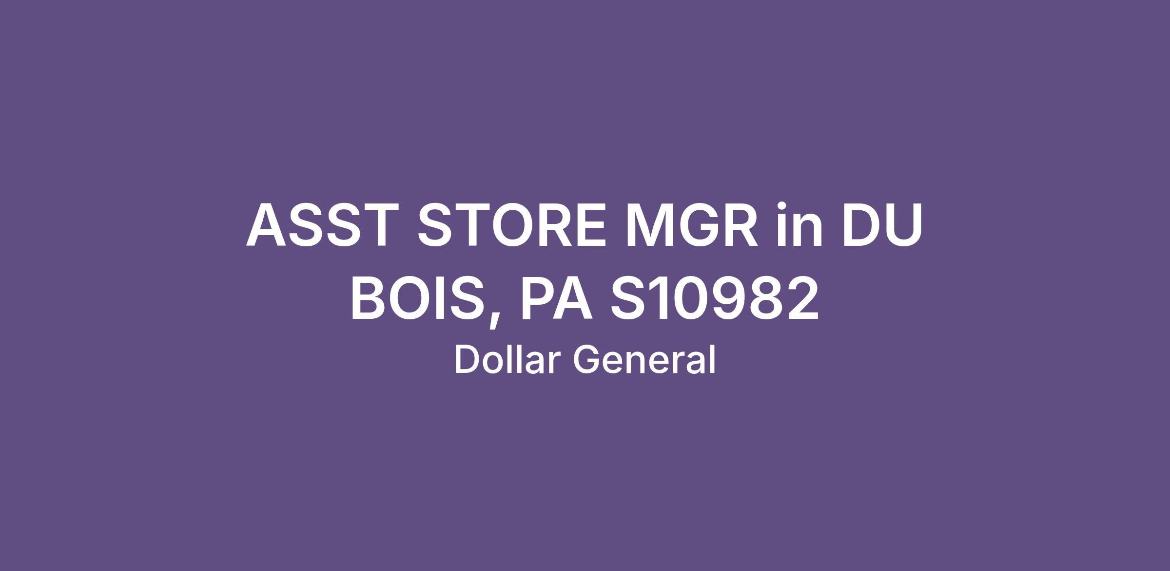 ASST STORE MGR in DU BOIS, PA S10982
