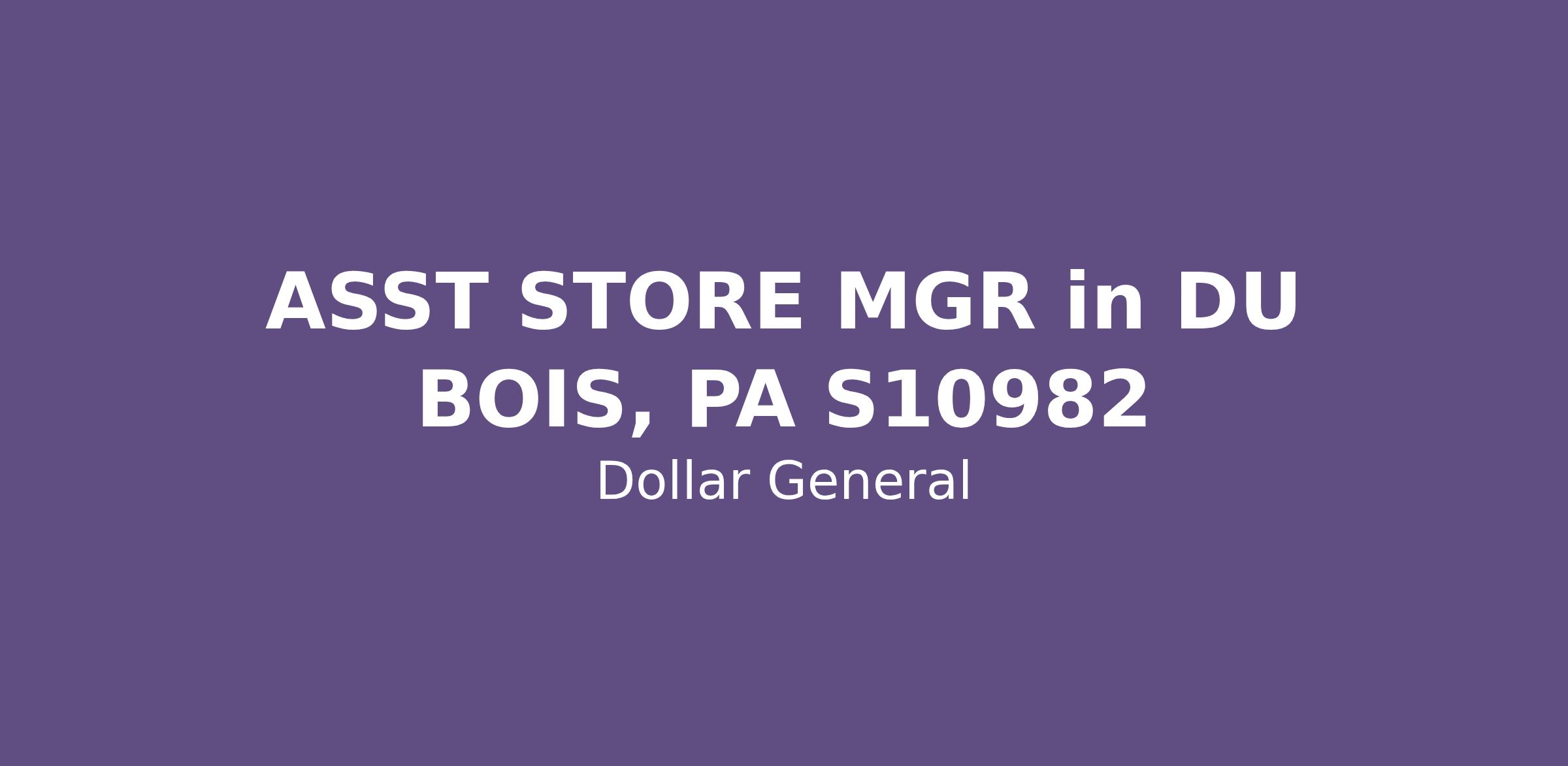 ASST STORE MGR in DU BOIS, PA S10982