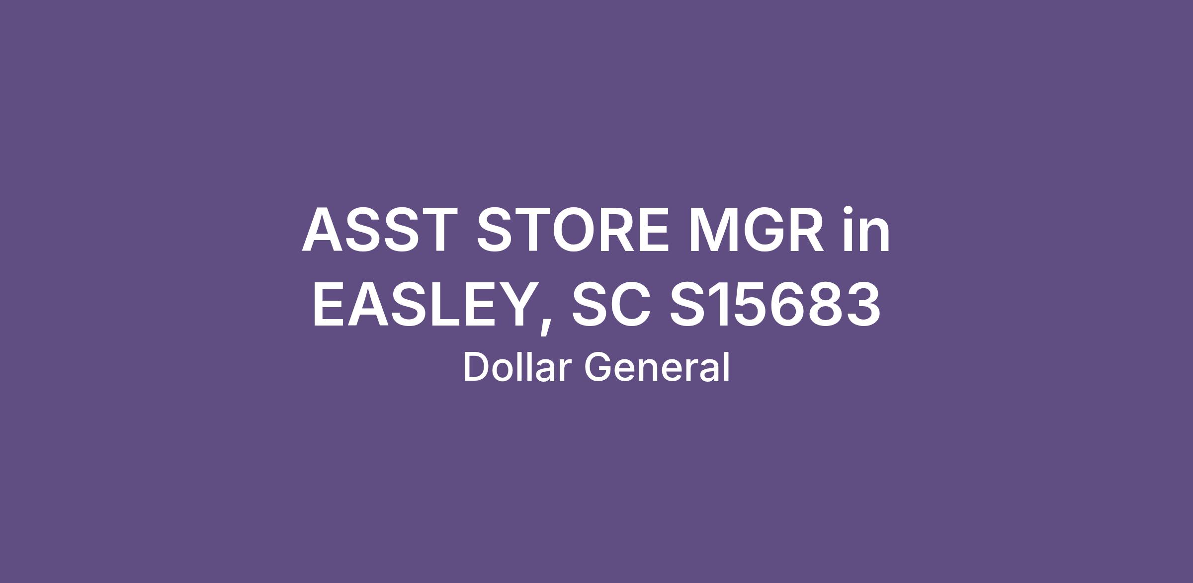 ASST STORE MGR in EASLEY, SC S15683