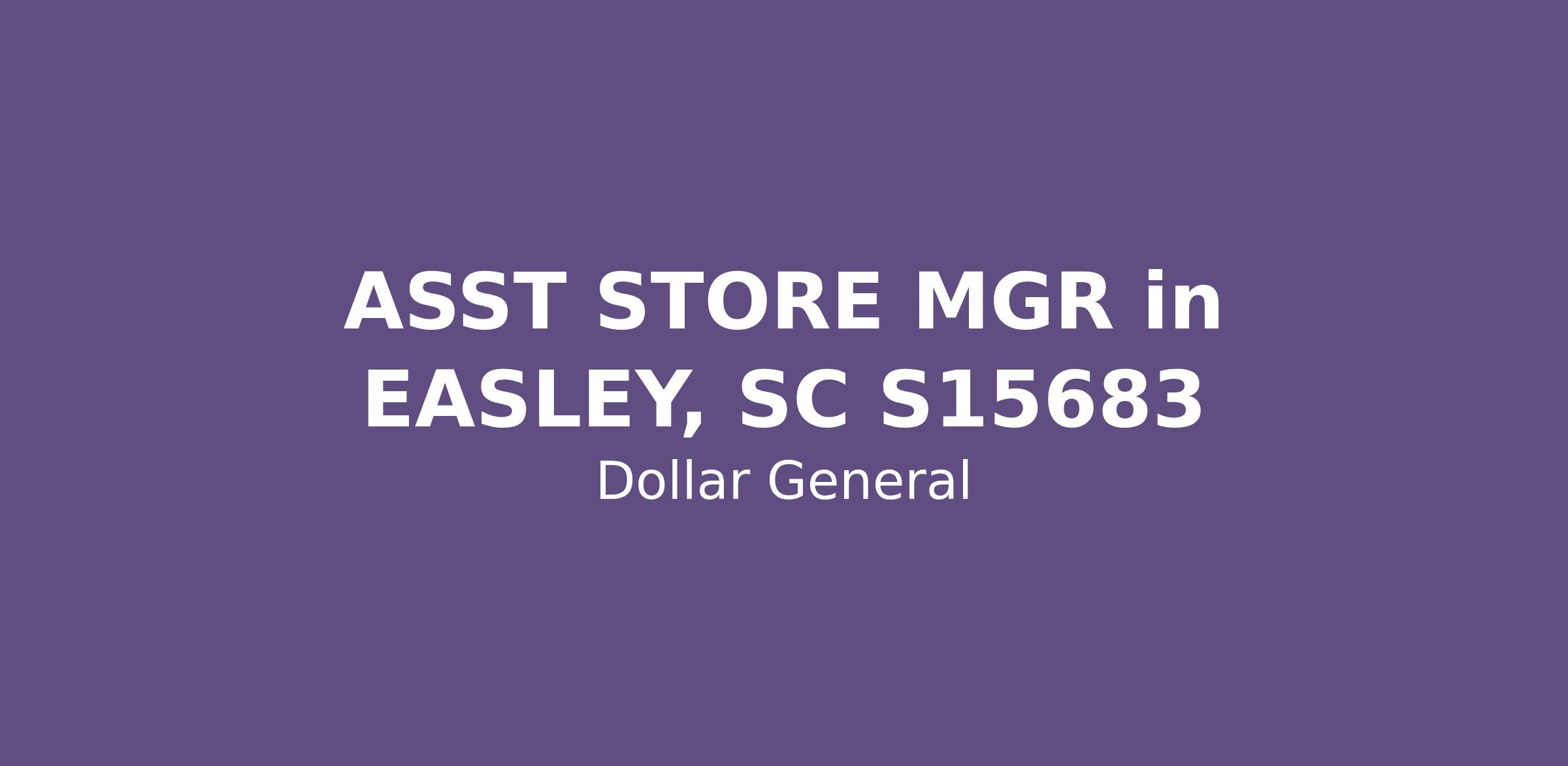 ASST STORE MGR in EASLEY, SC S15683