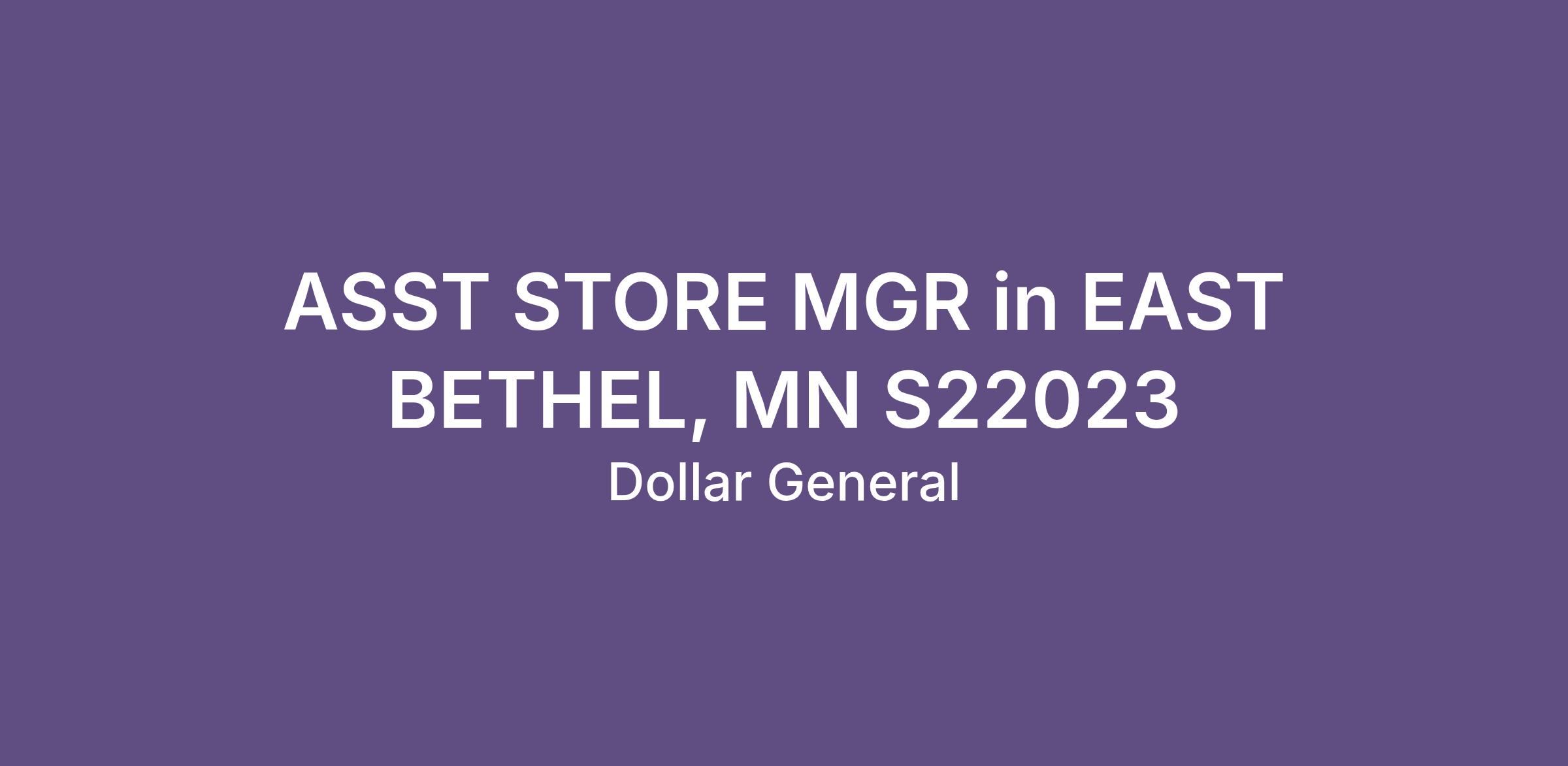 ASST STORE MGR in EAST BETHEL, MN S22023