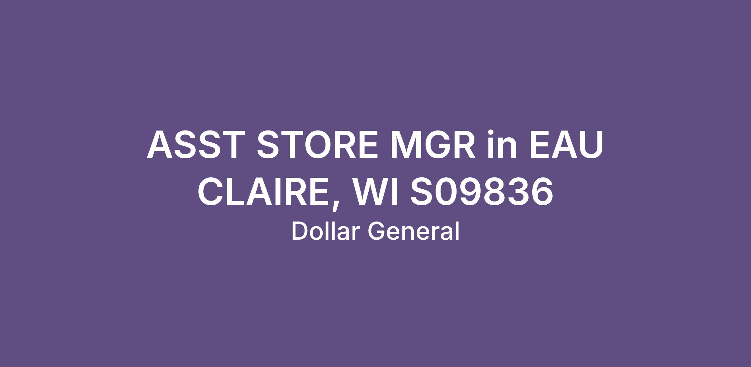 ASST STORE MGR in EAU CLAIRE, WI S09836