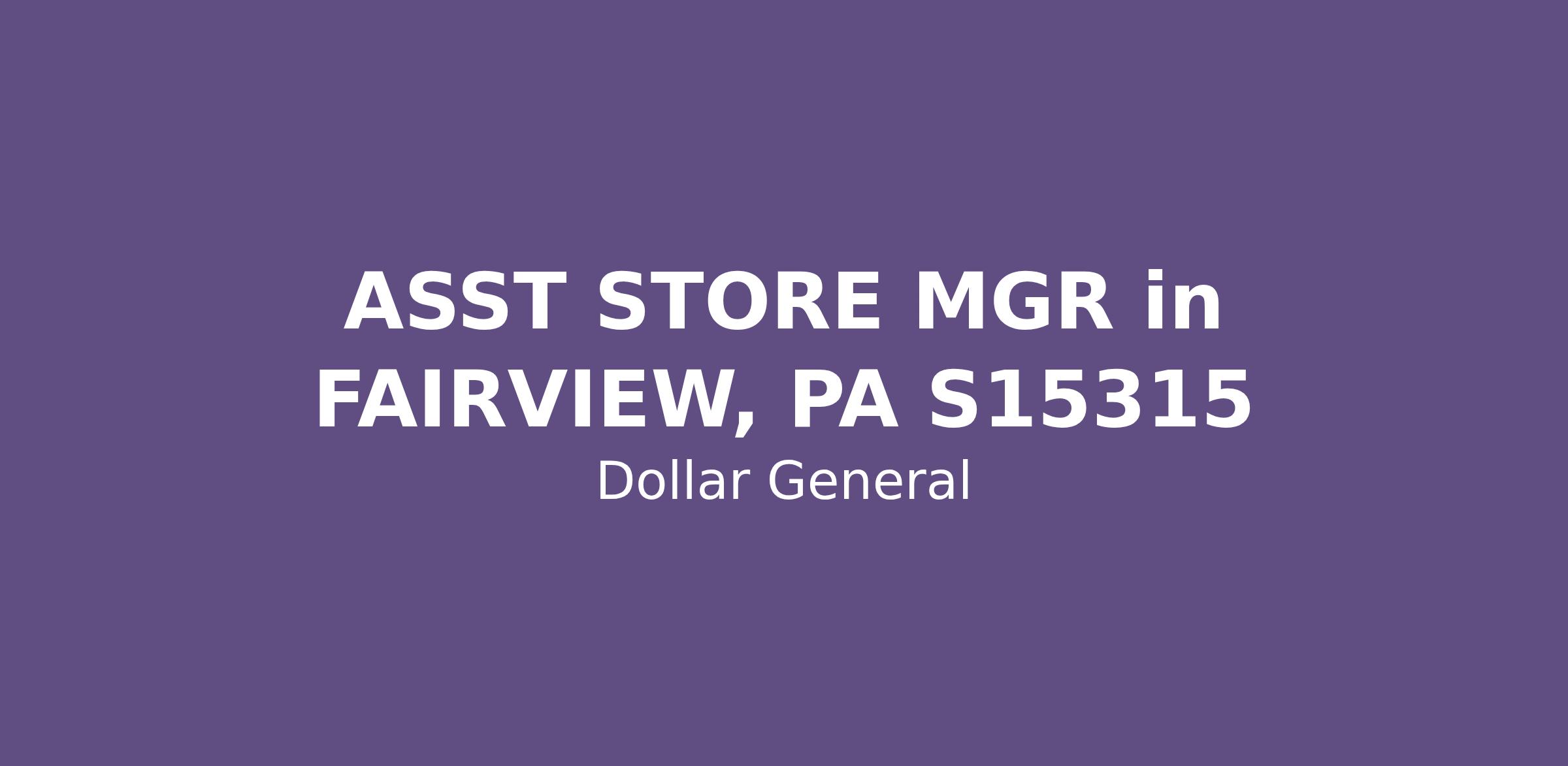 ASST STORE MGR in FAIRVIEW, PA S15315