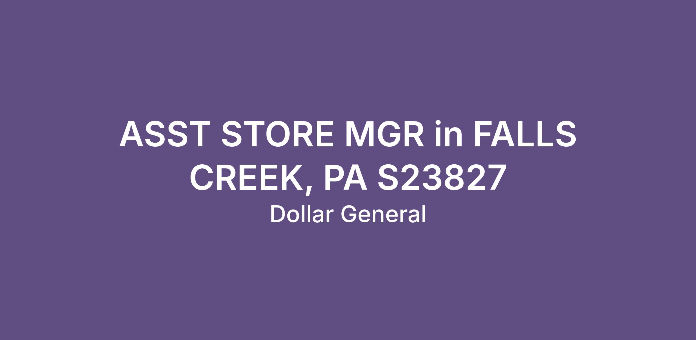 ASST STORE MGR in FALLS CREEK, PA S23827