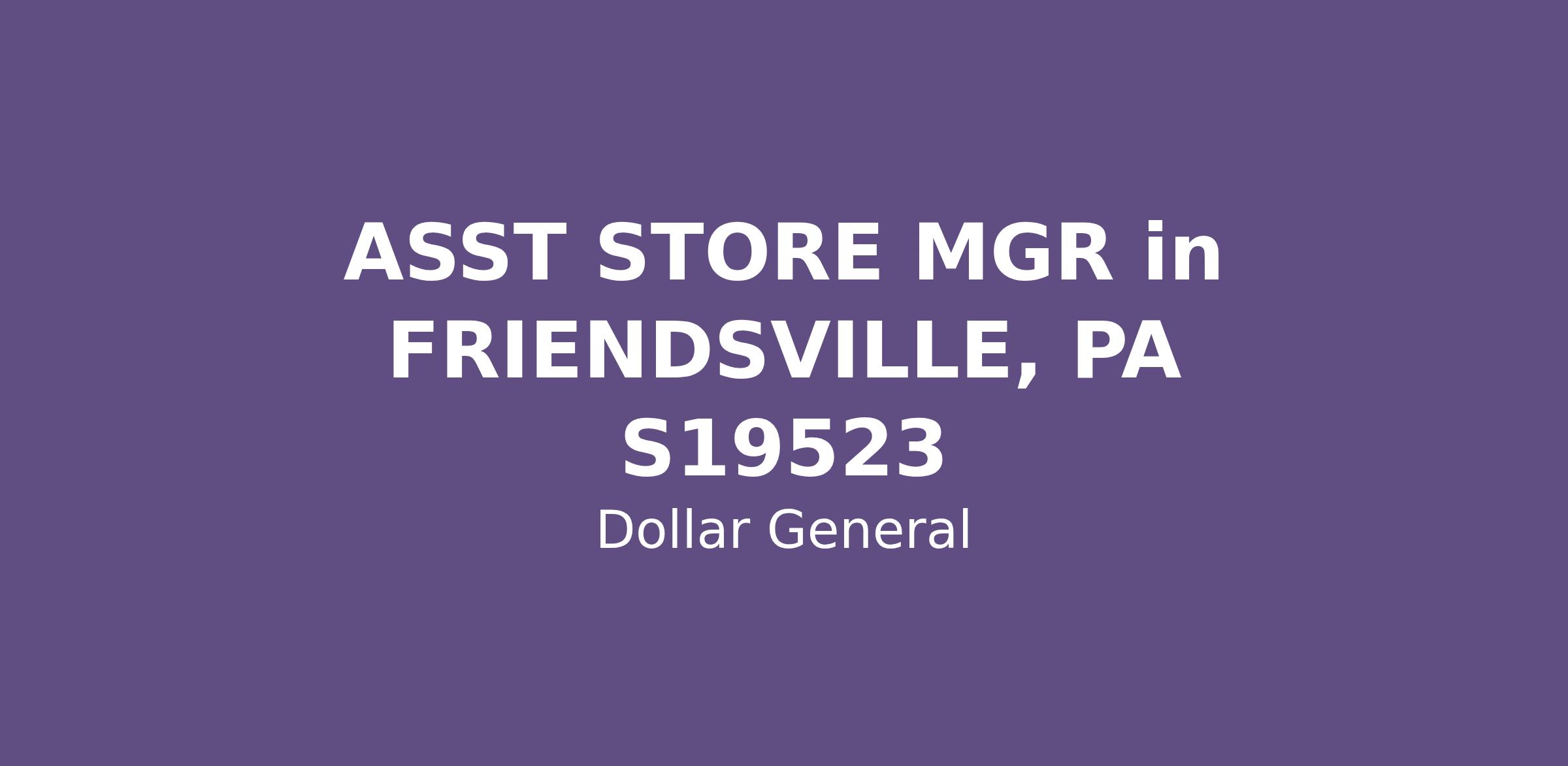 ASST STORE MGR in FRIENDSVILLE, PA S19523
