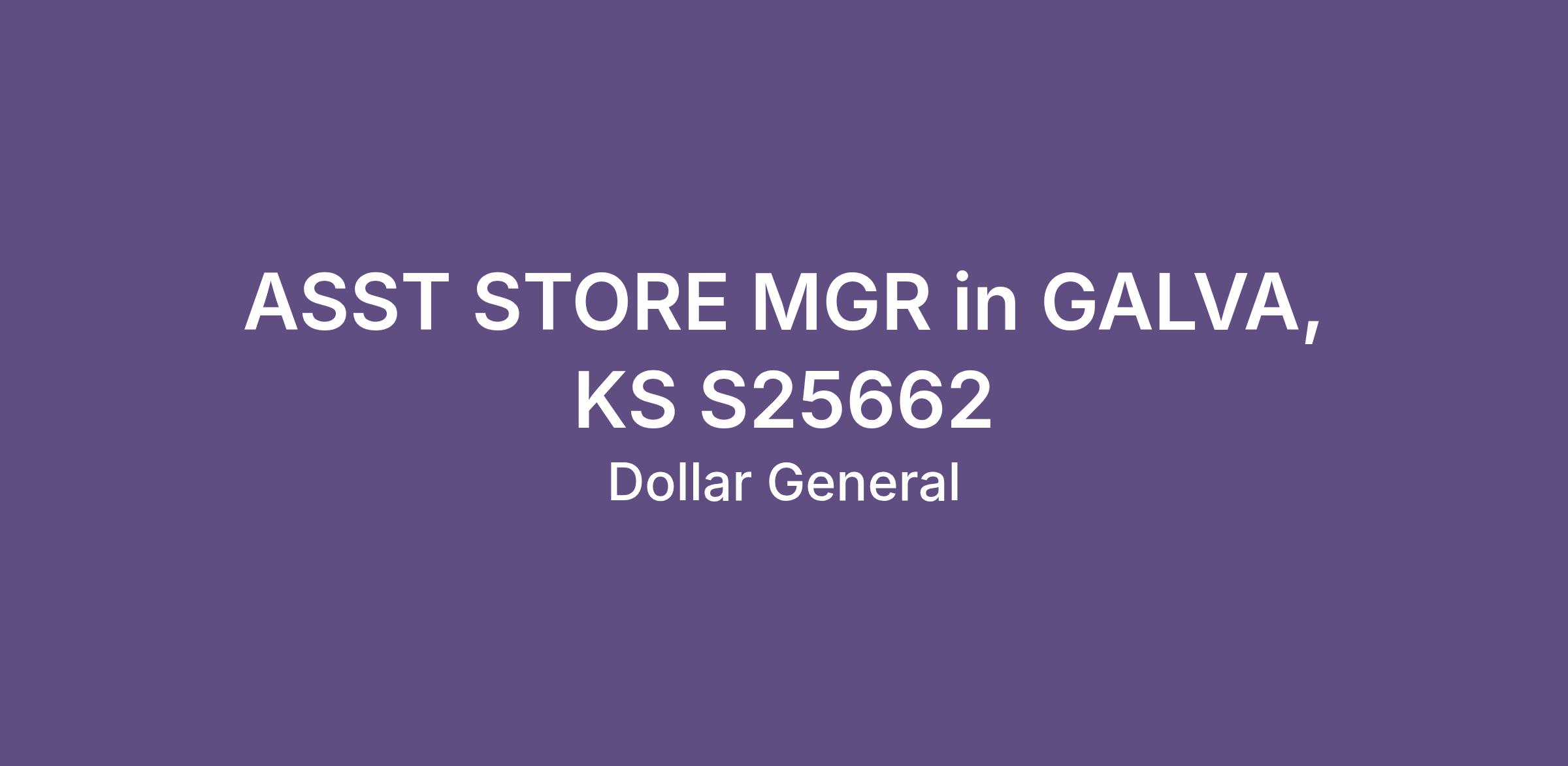 ASST STORE MGR in GALVA, KS S25662