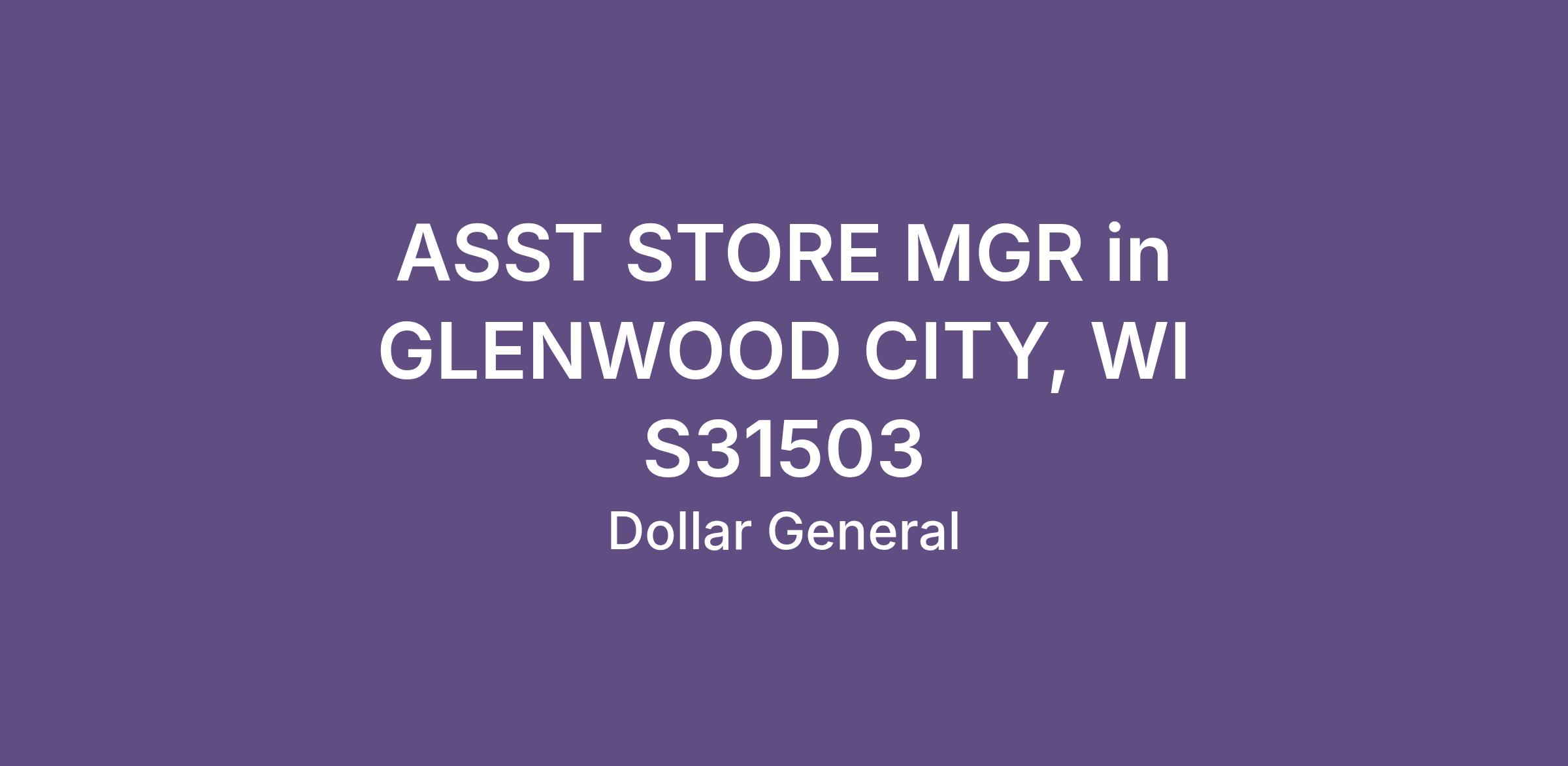 ASST STORE MGR in GLENWOOD CITY, WI S31503