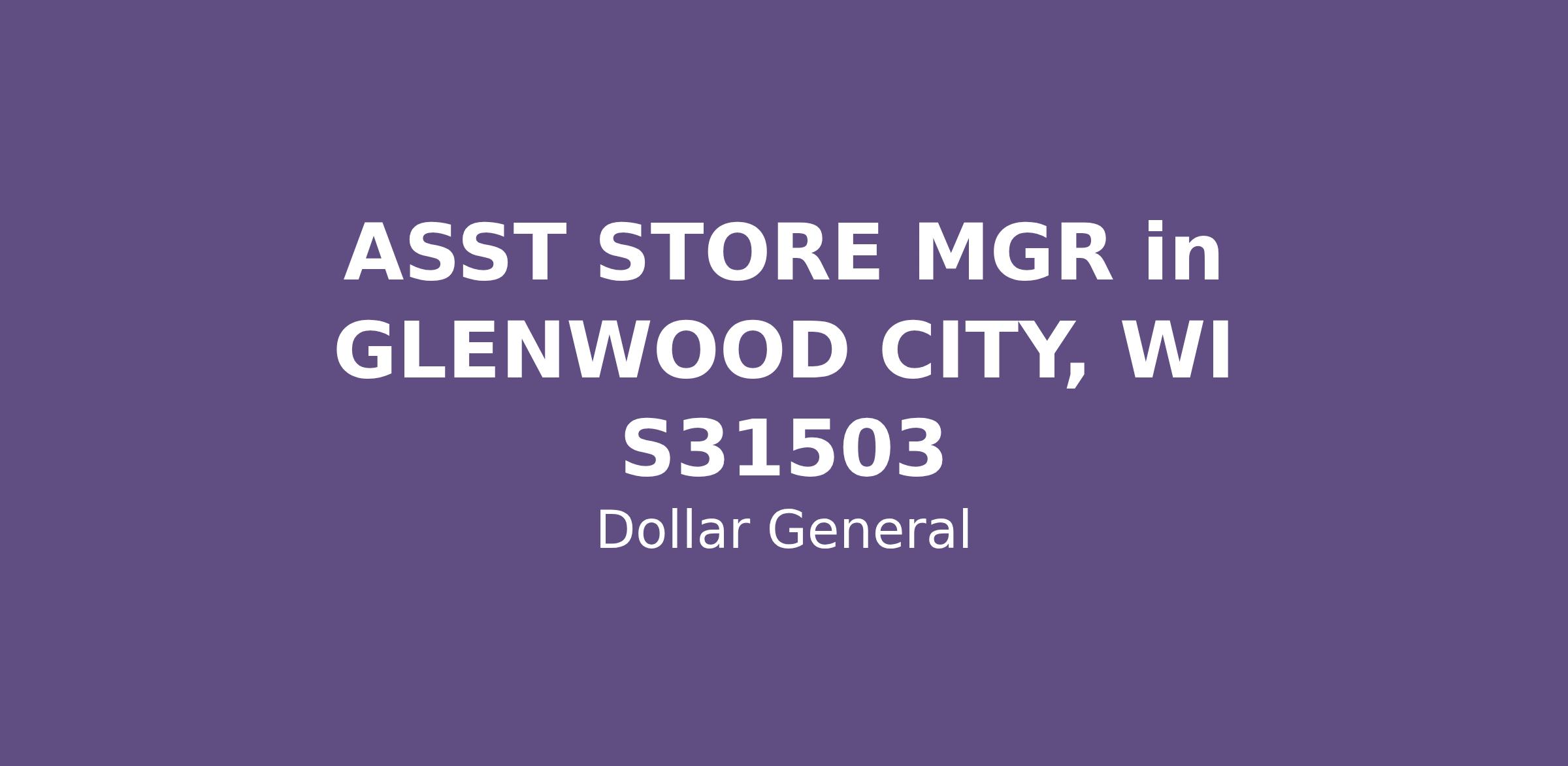 ASST STORE MGR in GLENWOOD CITY, WI S31503