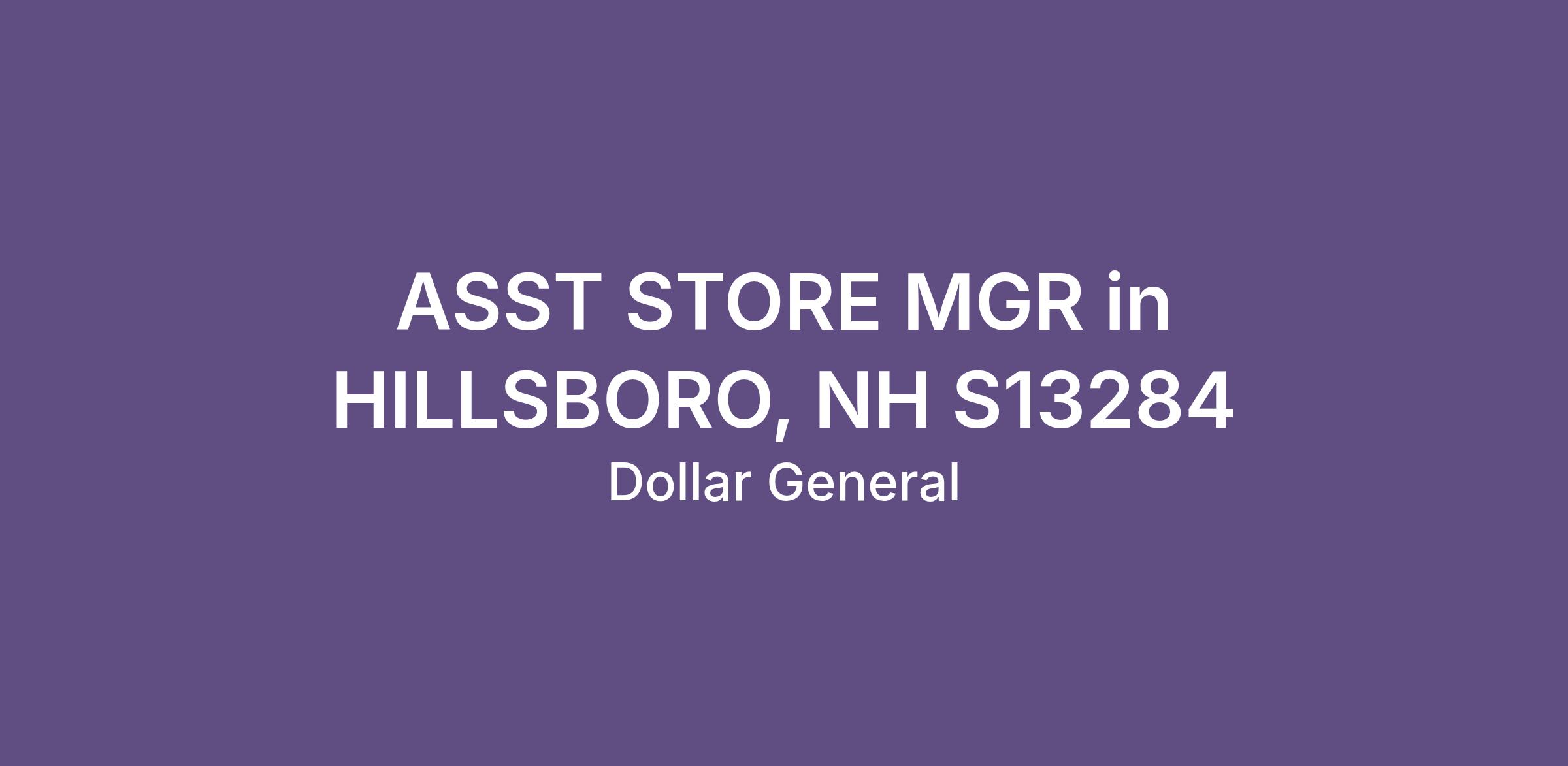 ASST STORE MGR in HILLSBORO, NH S13284
