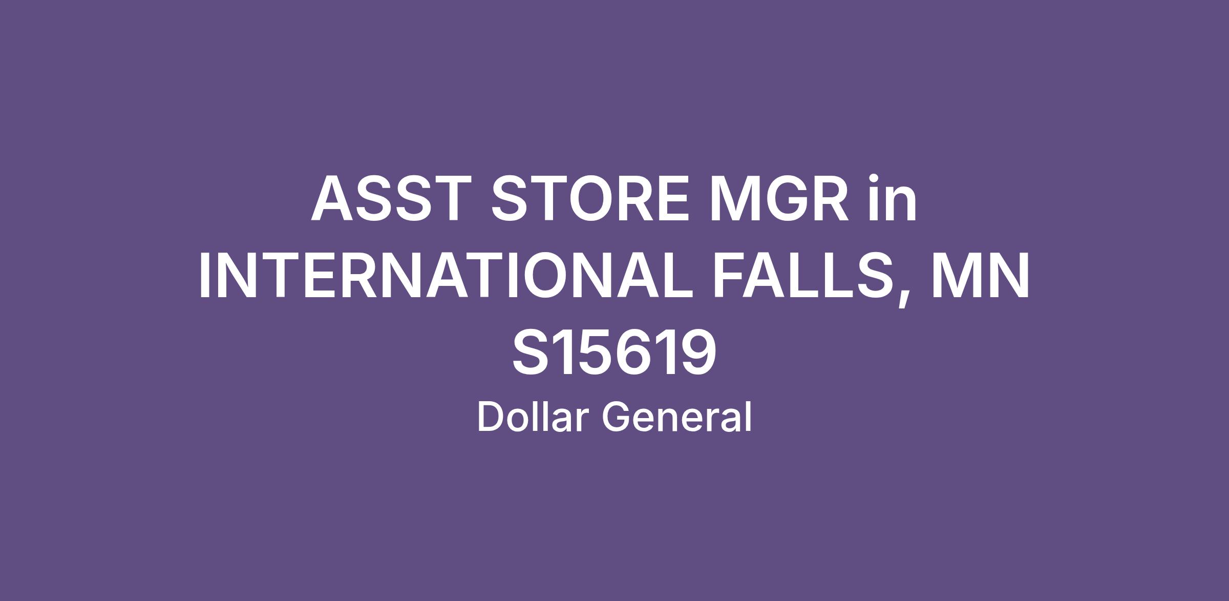 ASST STORE MGR in INTERNATIONAL FALLS, MN S15619