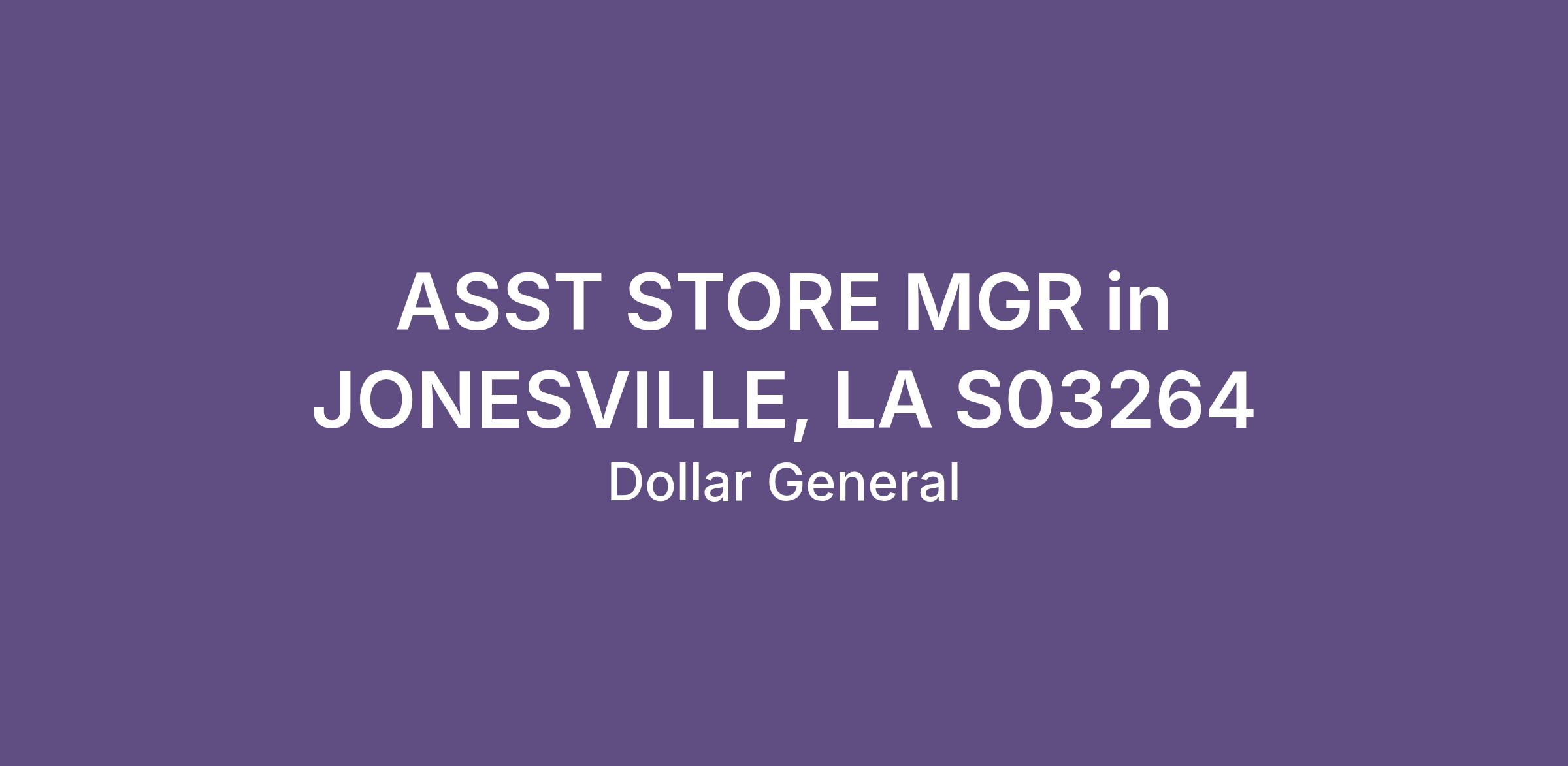 ASST STORE MGR in JONESVILLE, LA S03264
