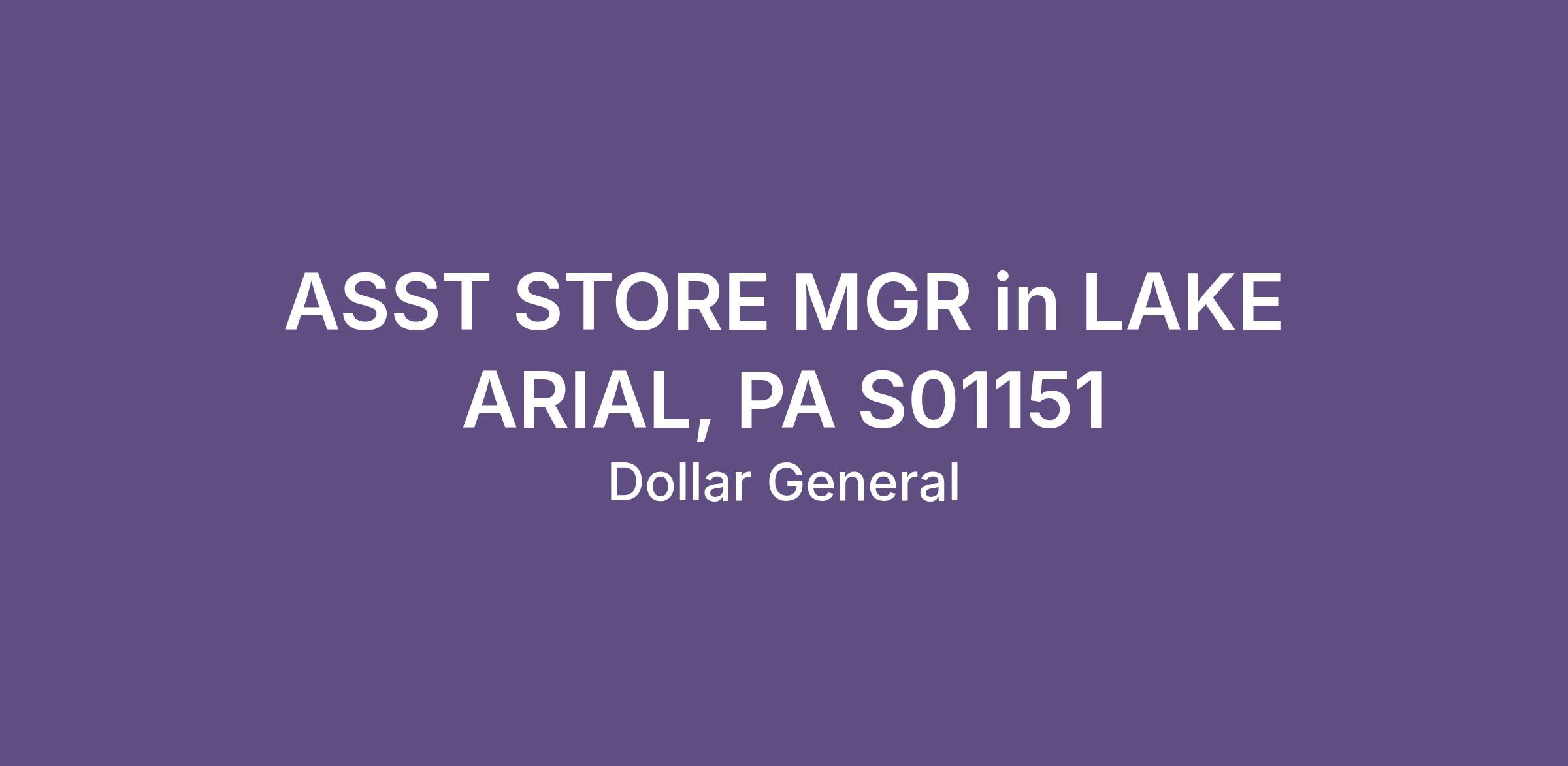 ASST STORE MGR in LAKE ARIAL, PA S01151