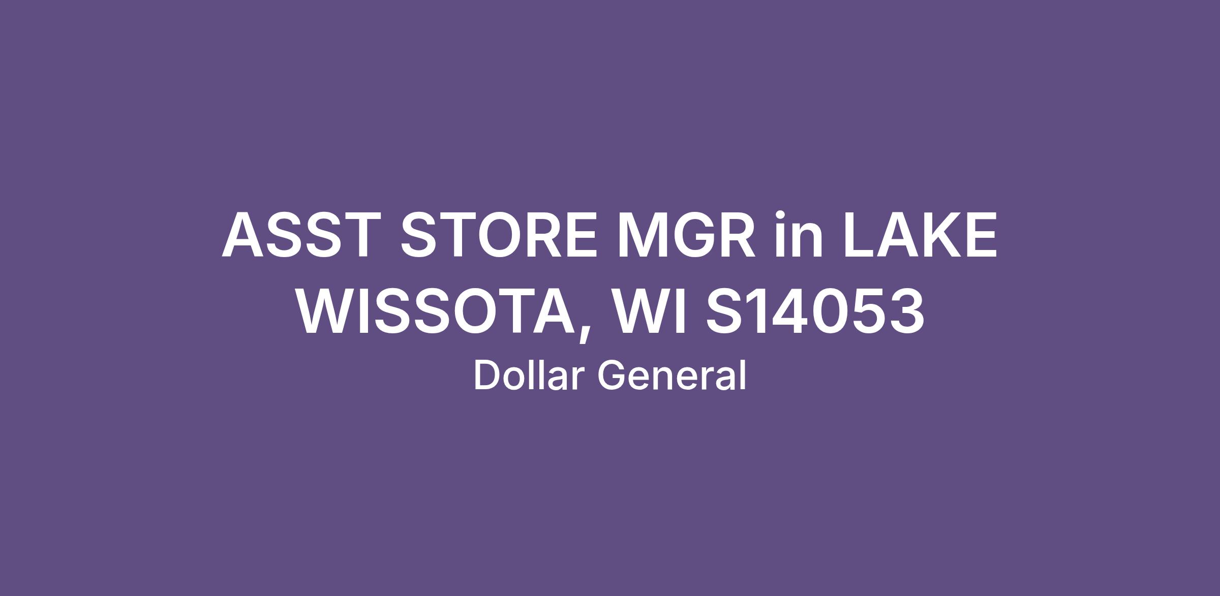 ASST STORE MGR in LAKE WISSOTA, WI S14053