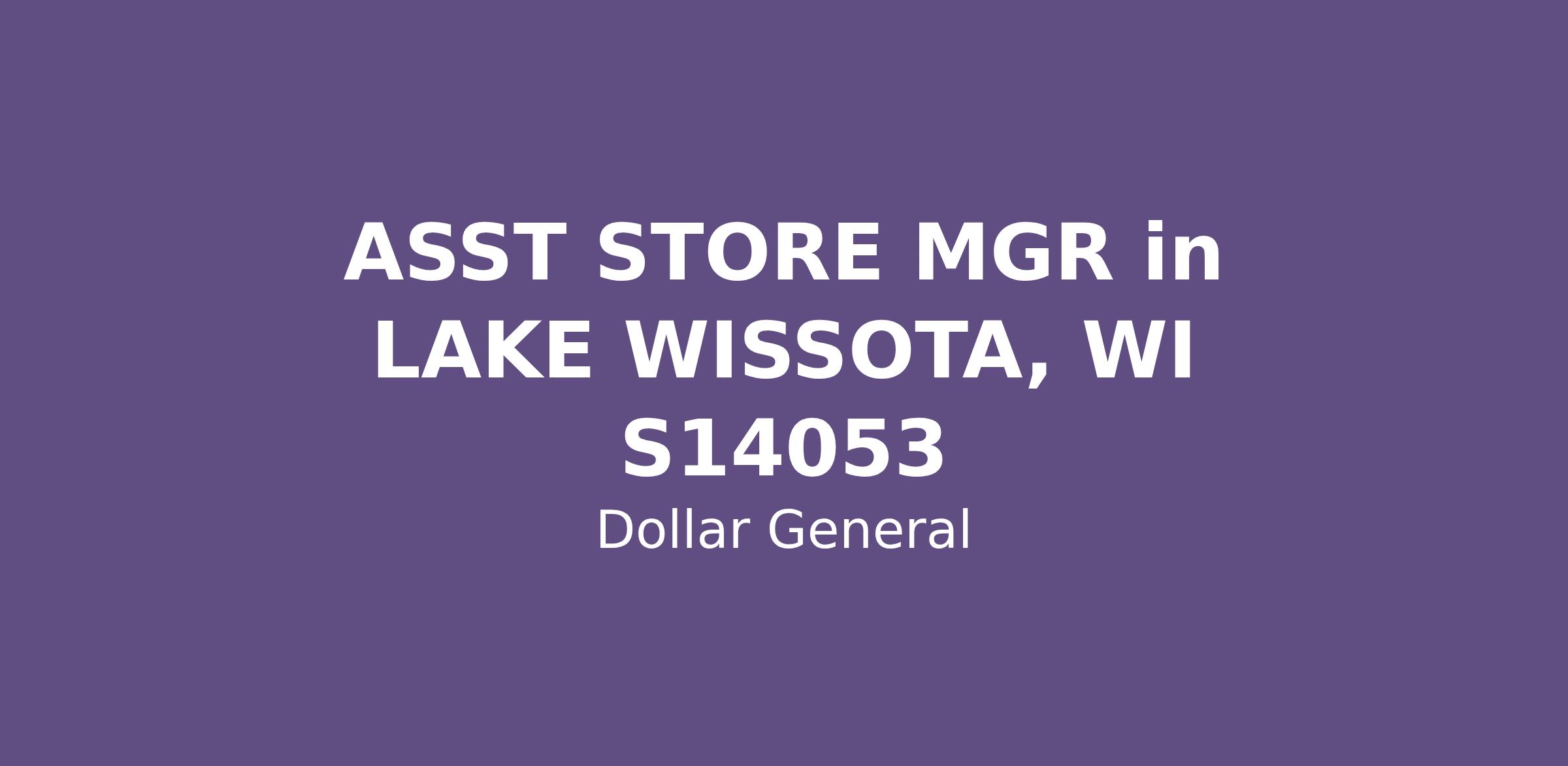 ASST STORE MGR in LAKE WISSOTA, WI S14053