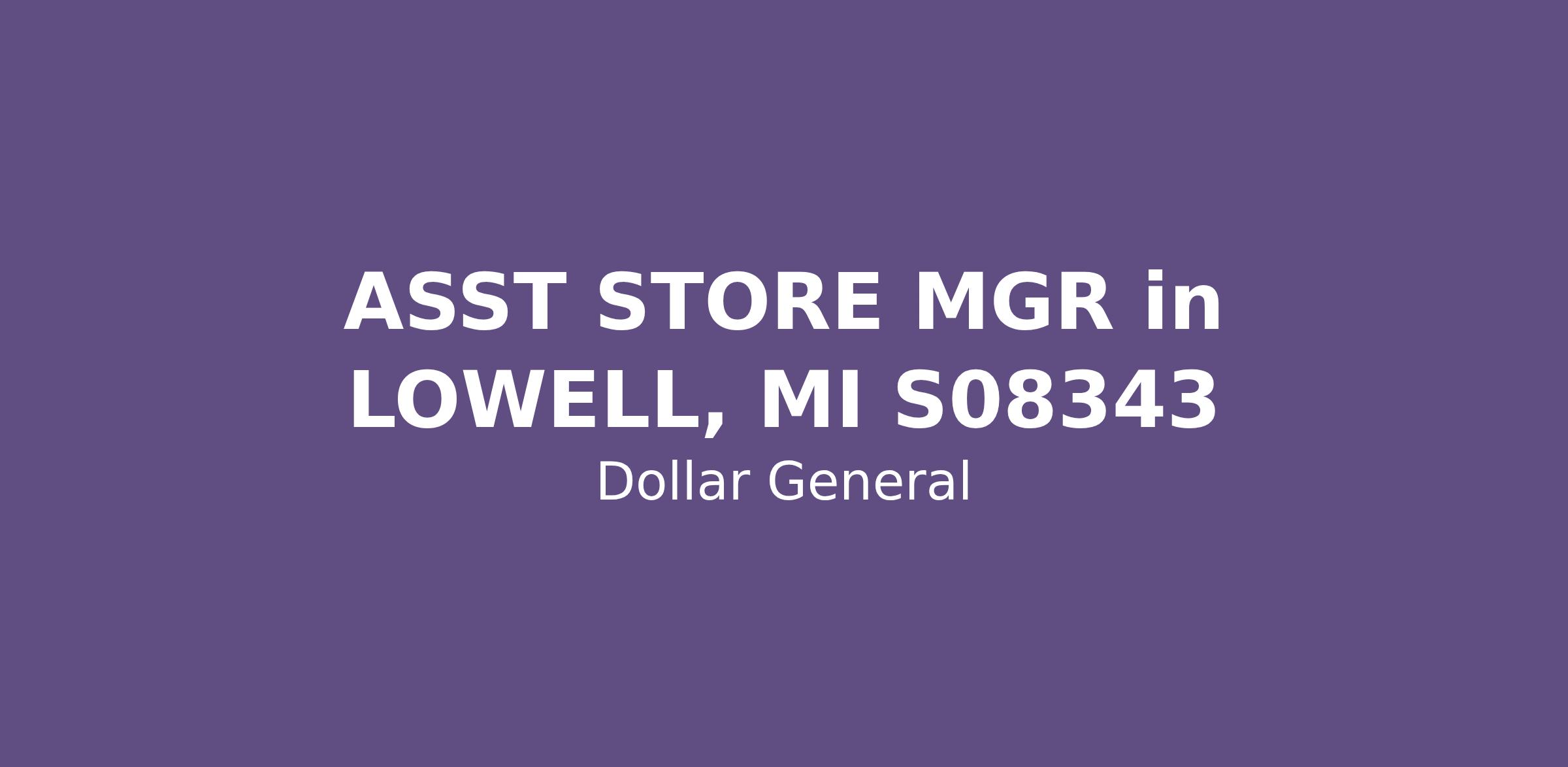 ASST STORE MGR in LOWELL, MI S08343