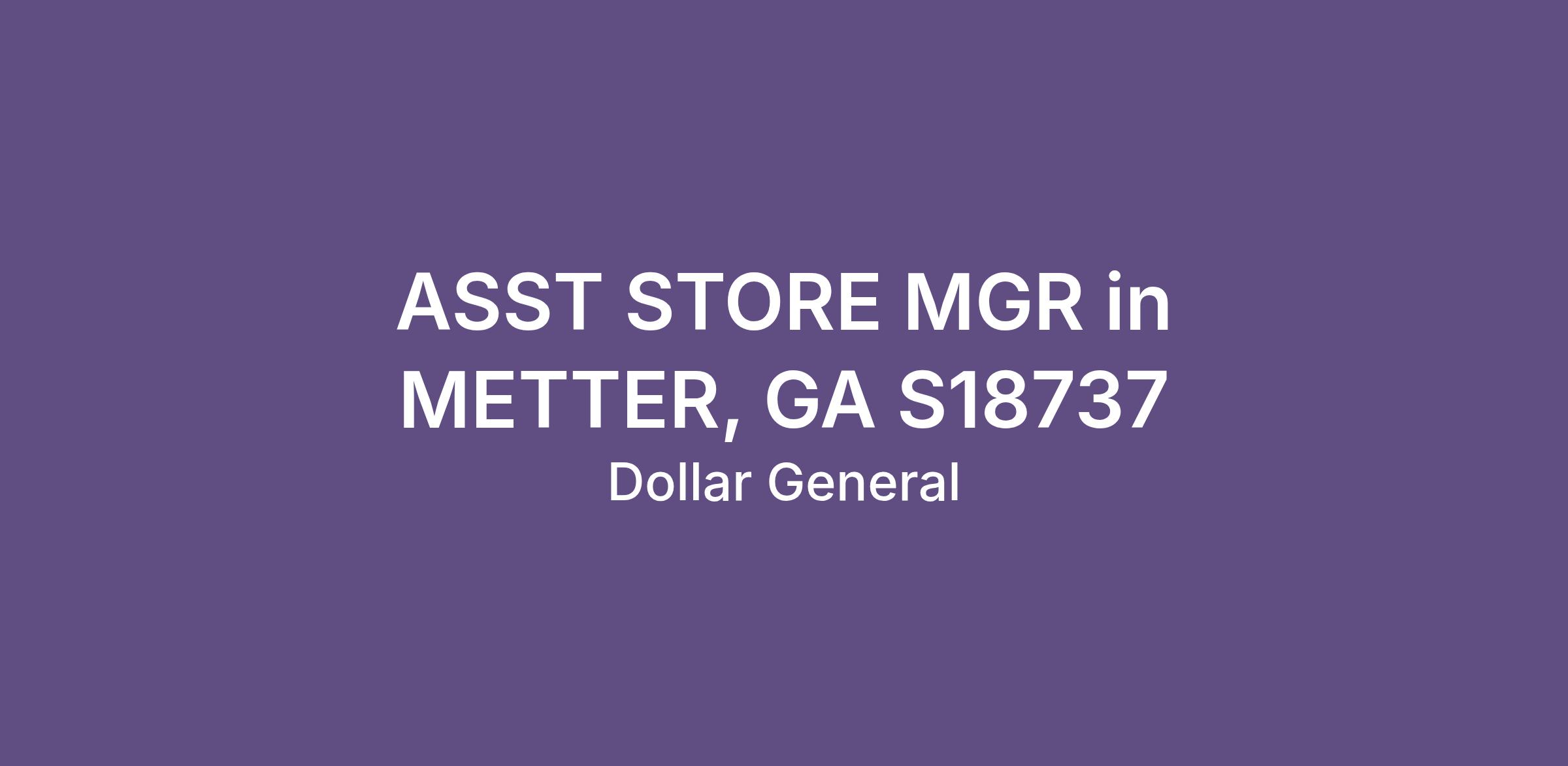 ASST STORE MGR in METTER, GA S18737