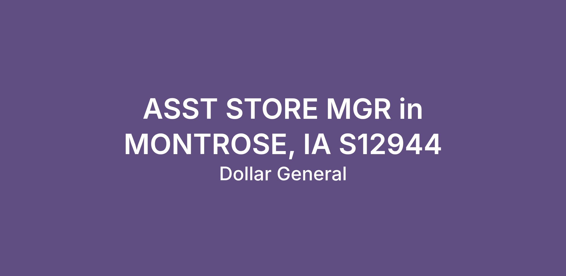 ASST STORE MGR in MONTROSE, IA S12944