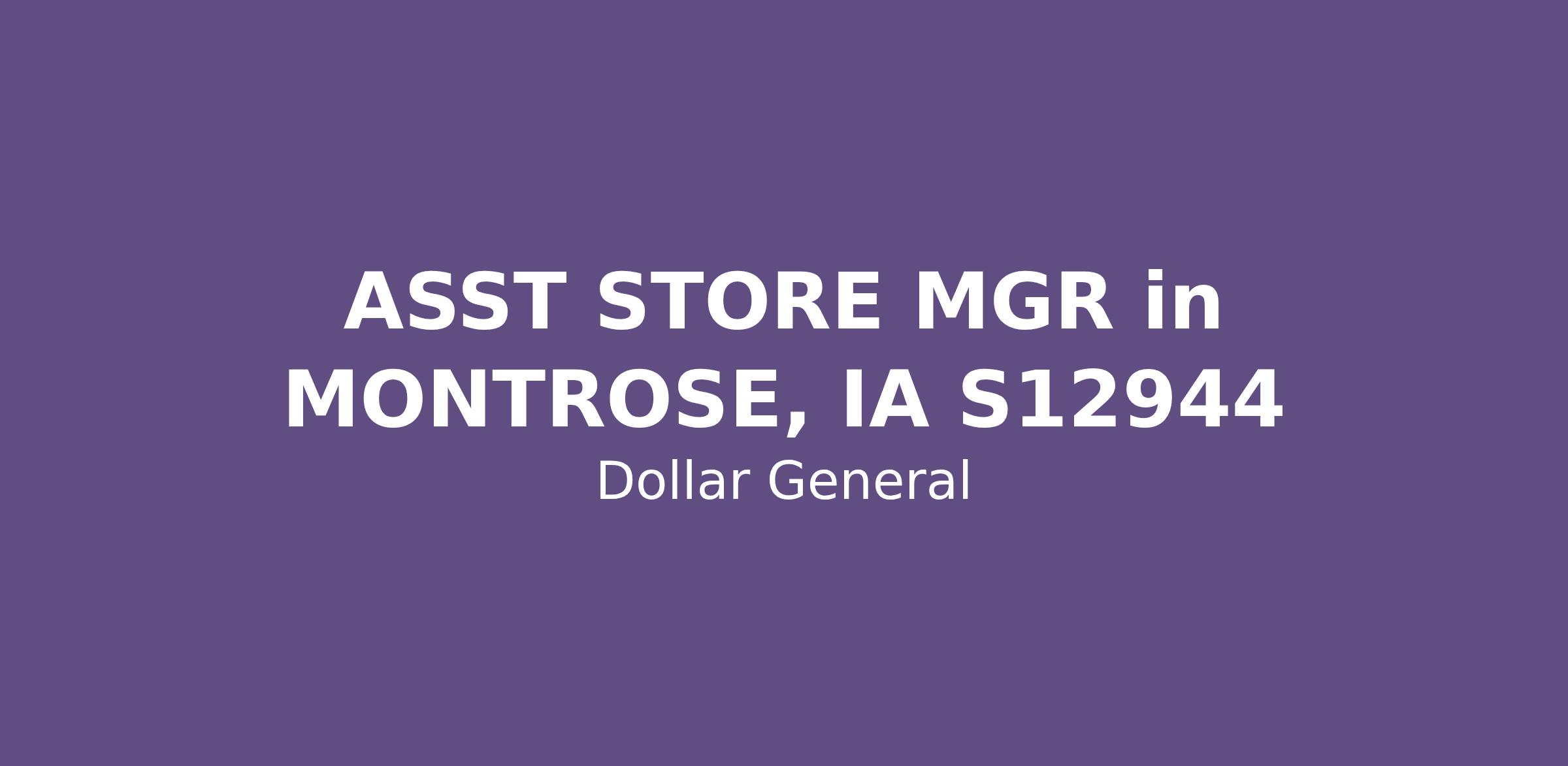 ASST STORE MGR in MONTROSE, IA S12944