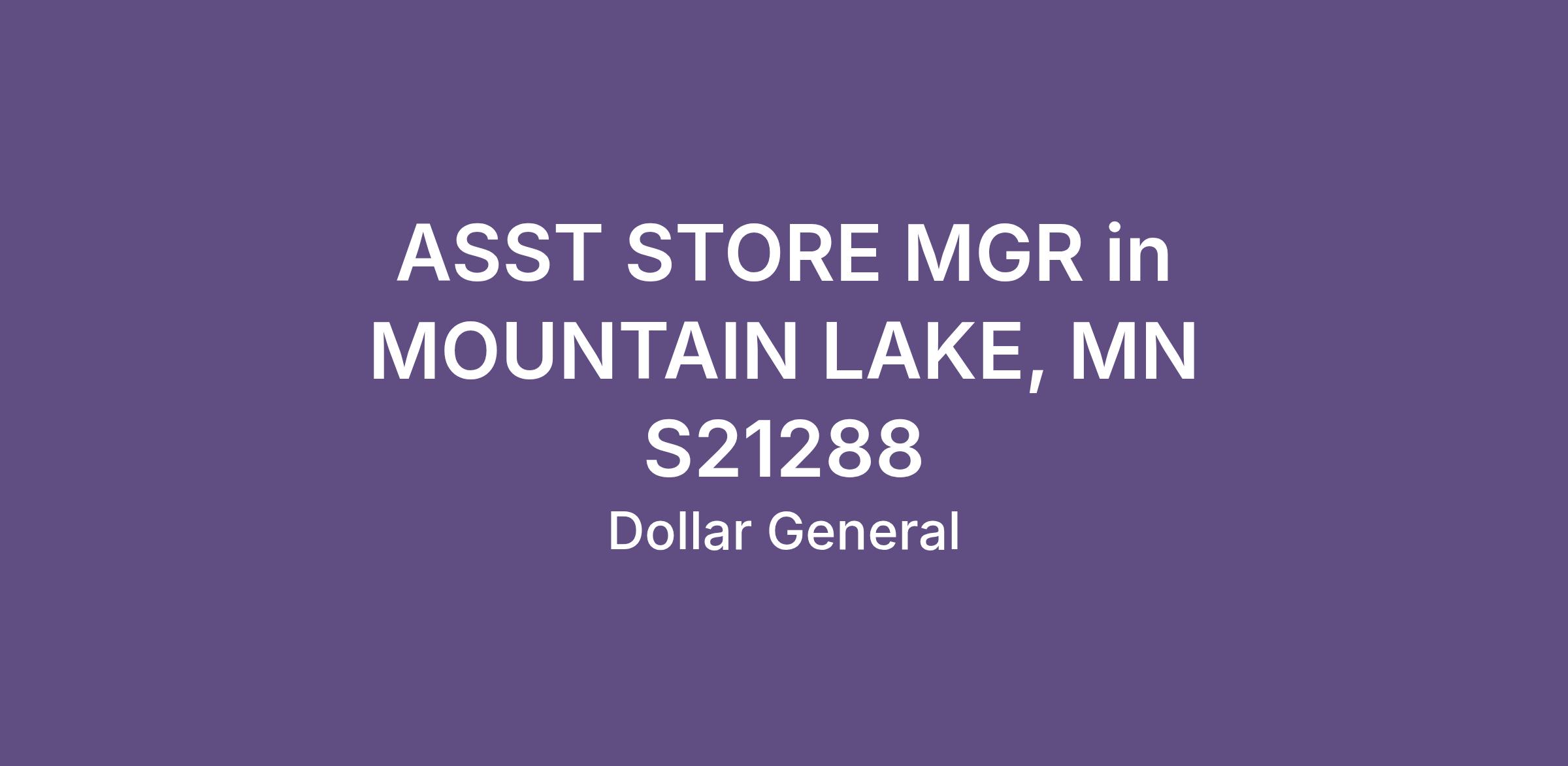 ASST STORE MGR in MOUNTAIN LAKE, MN S21288