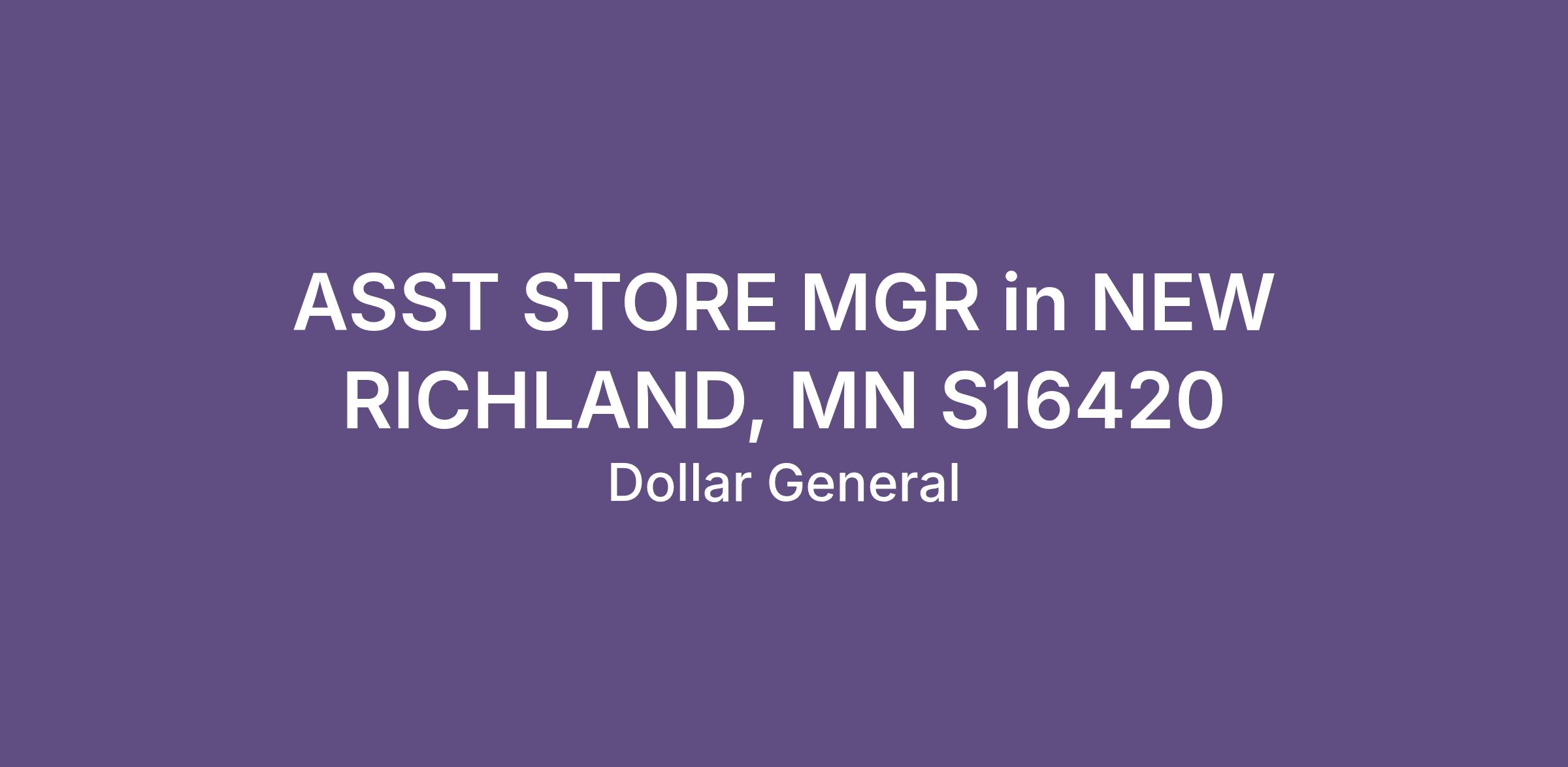 ASST STORE MGR in NEW RICHLAND, MN S16420