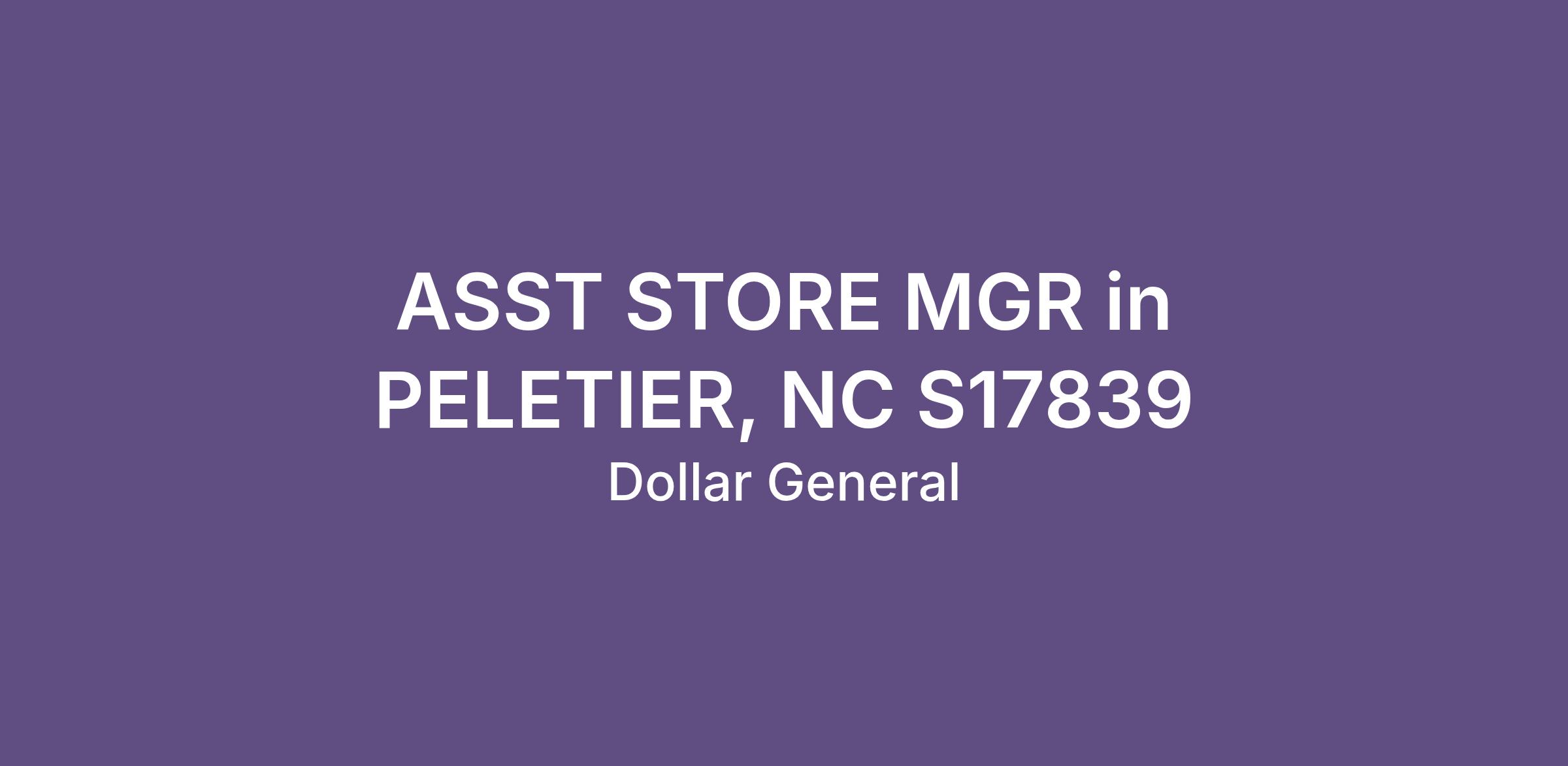 ASST STORE MGR in PELETIER, NC S17839
