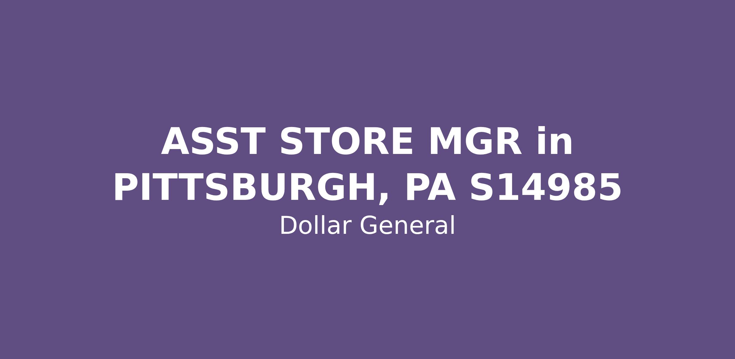 ASST STORE MGR in PITTSBURGH, PA S14985