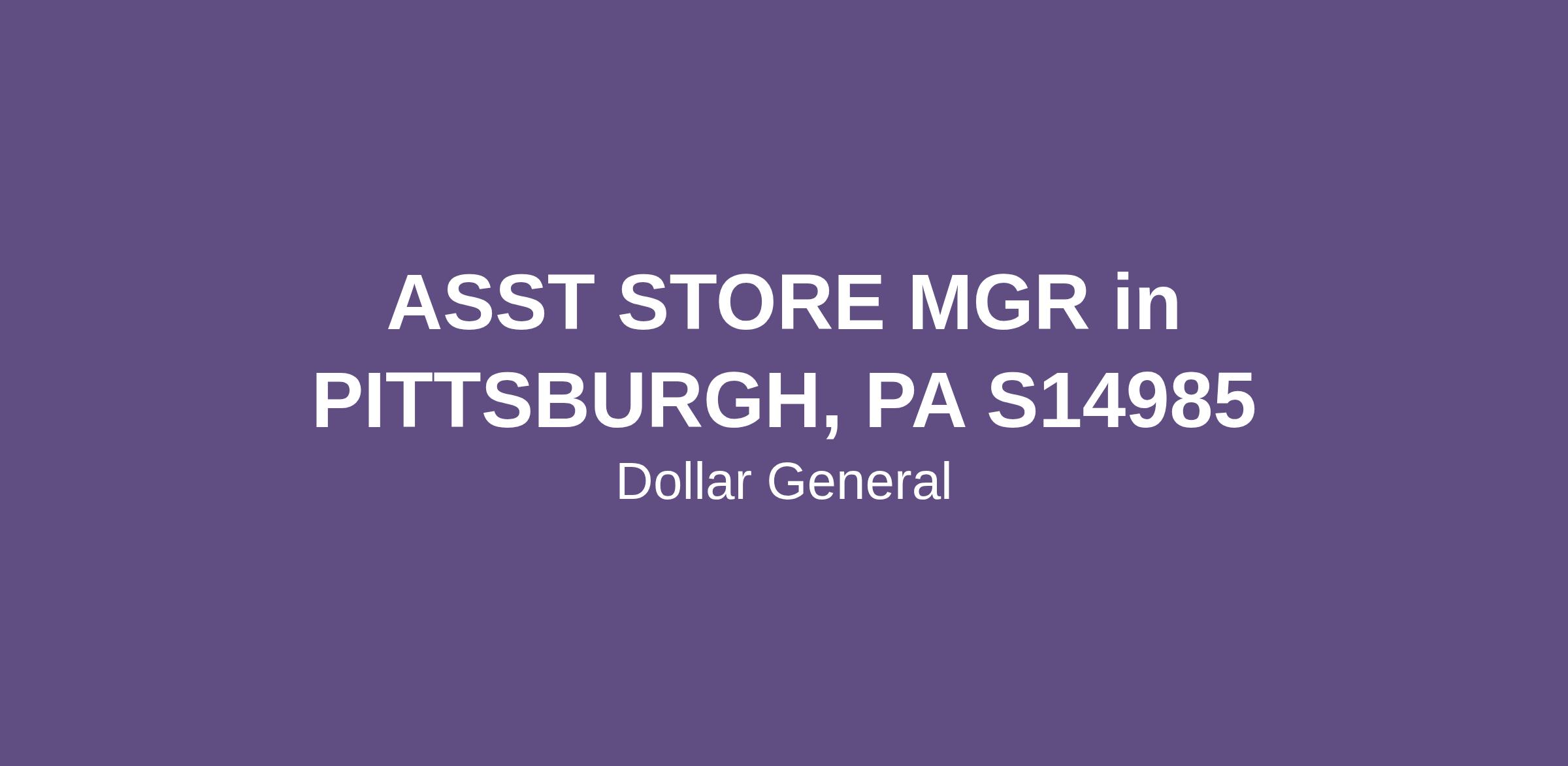 ASST STORE MGR in PITTSBURGH, PA S14985