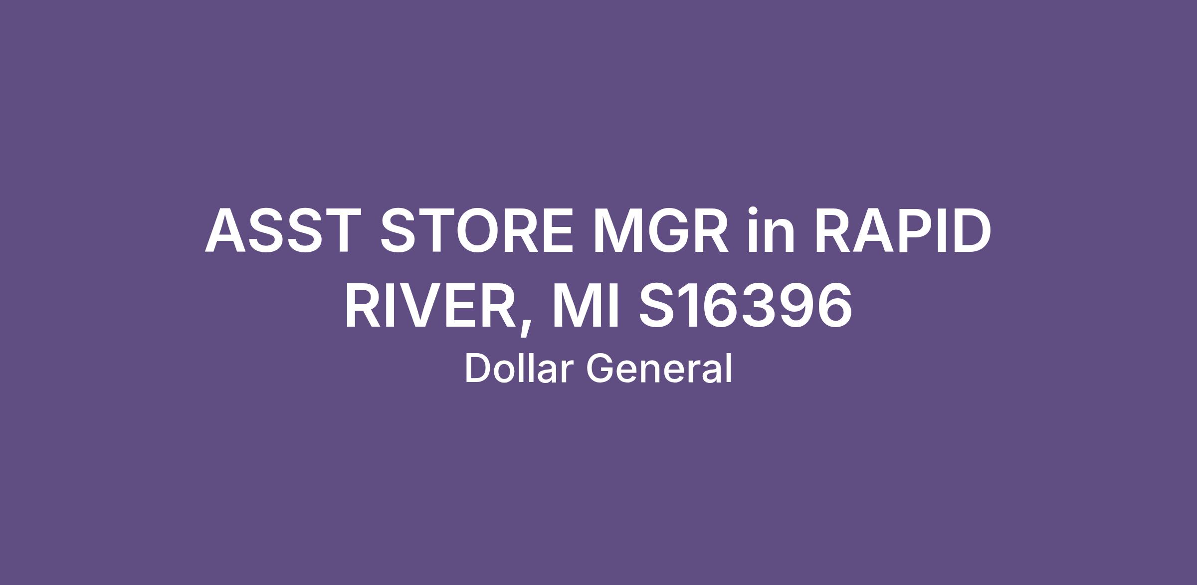 ASST STORE MGR in RAPID RIVER, MI S16396