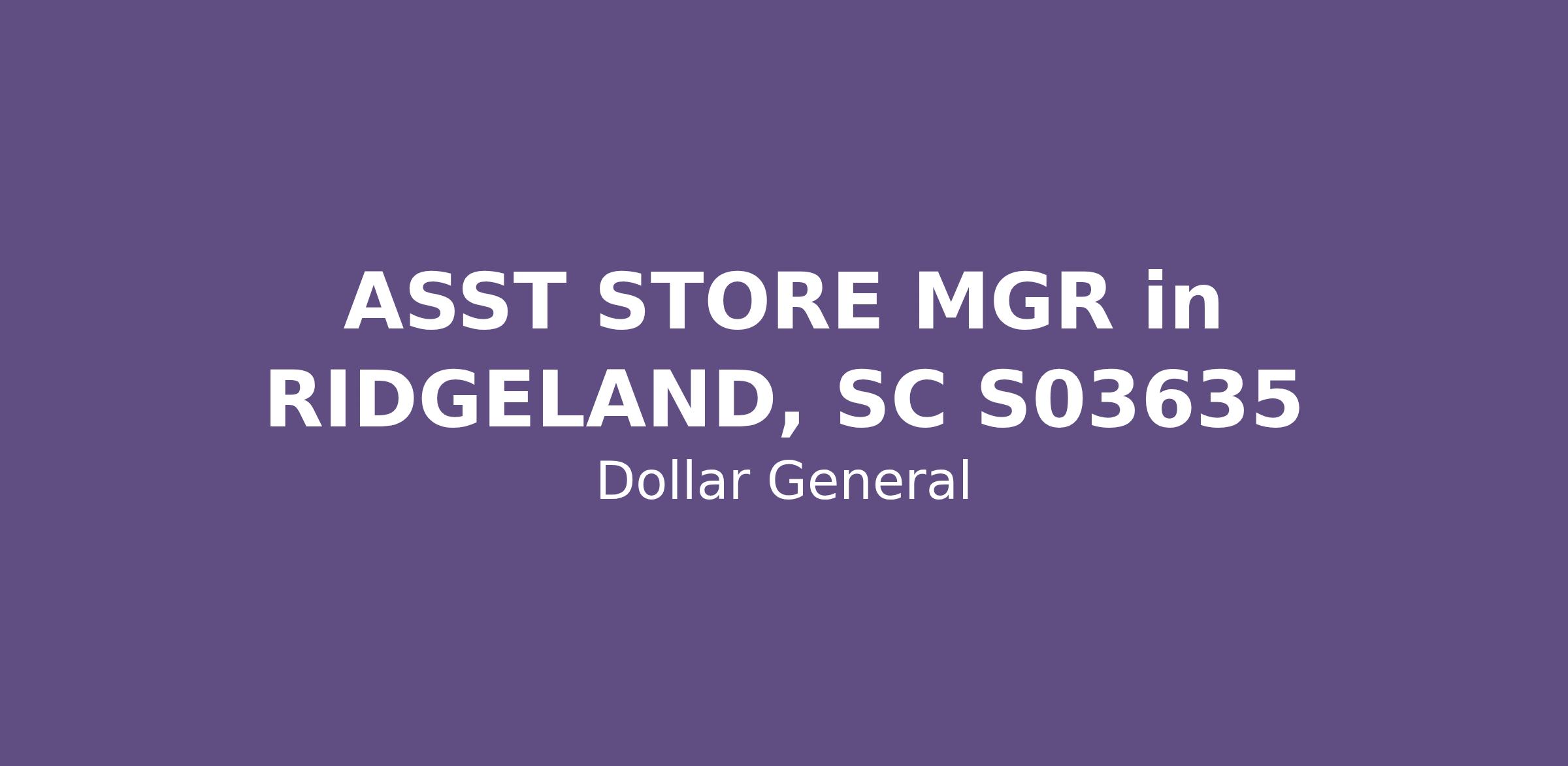 ASST STORE MGR in RIDGELAND, SC S03635