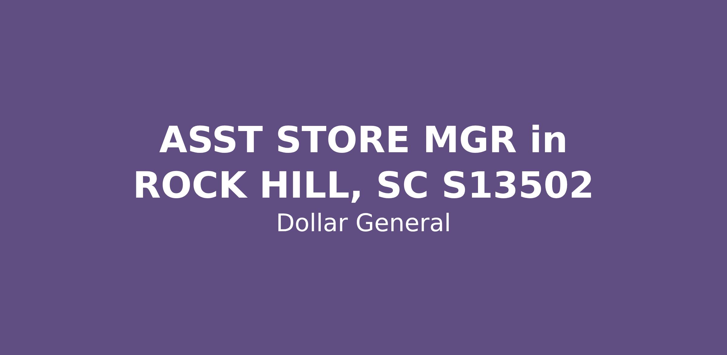 ASST STORE MGR in ROCK HILL, SC S13502